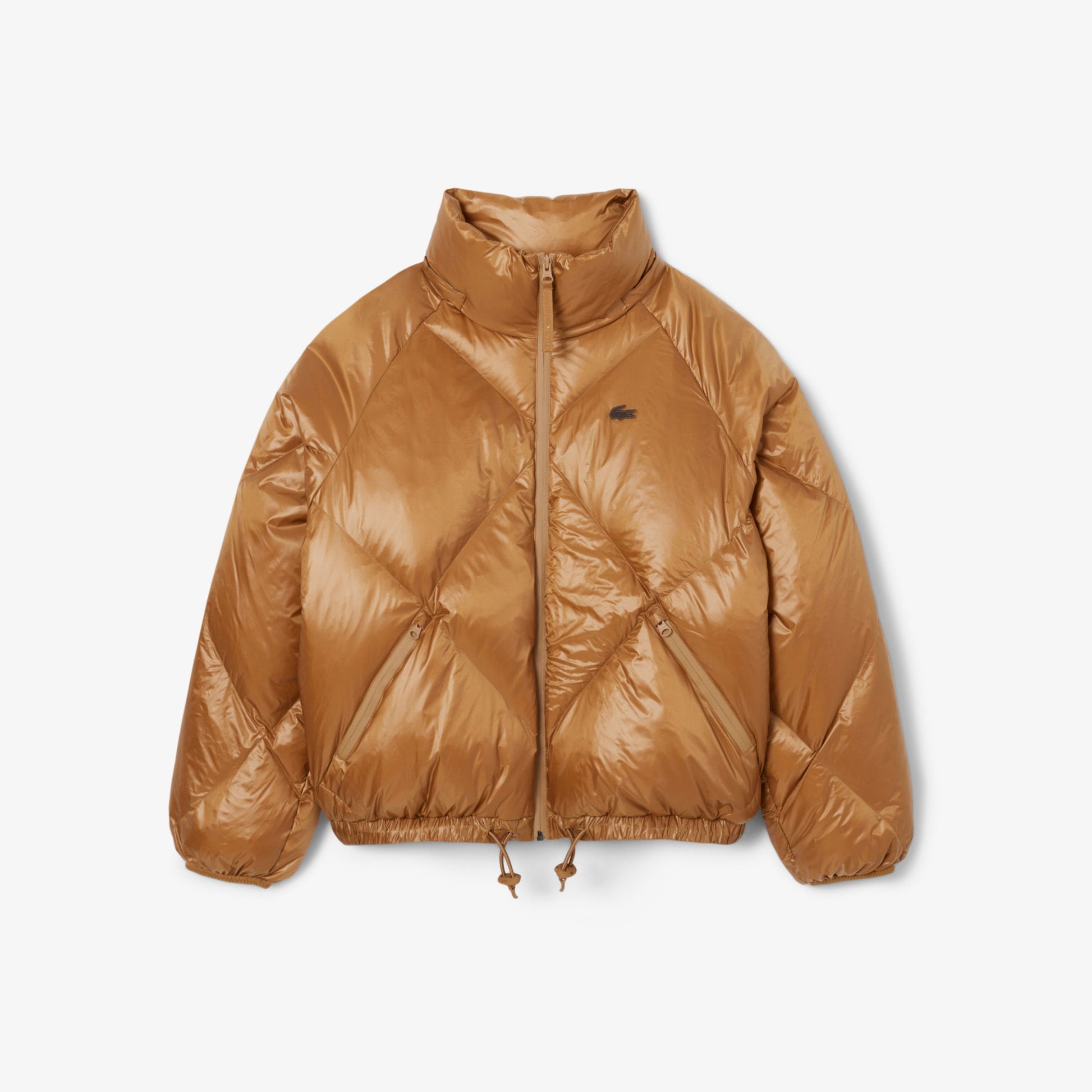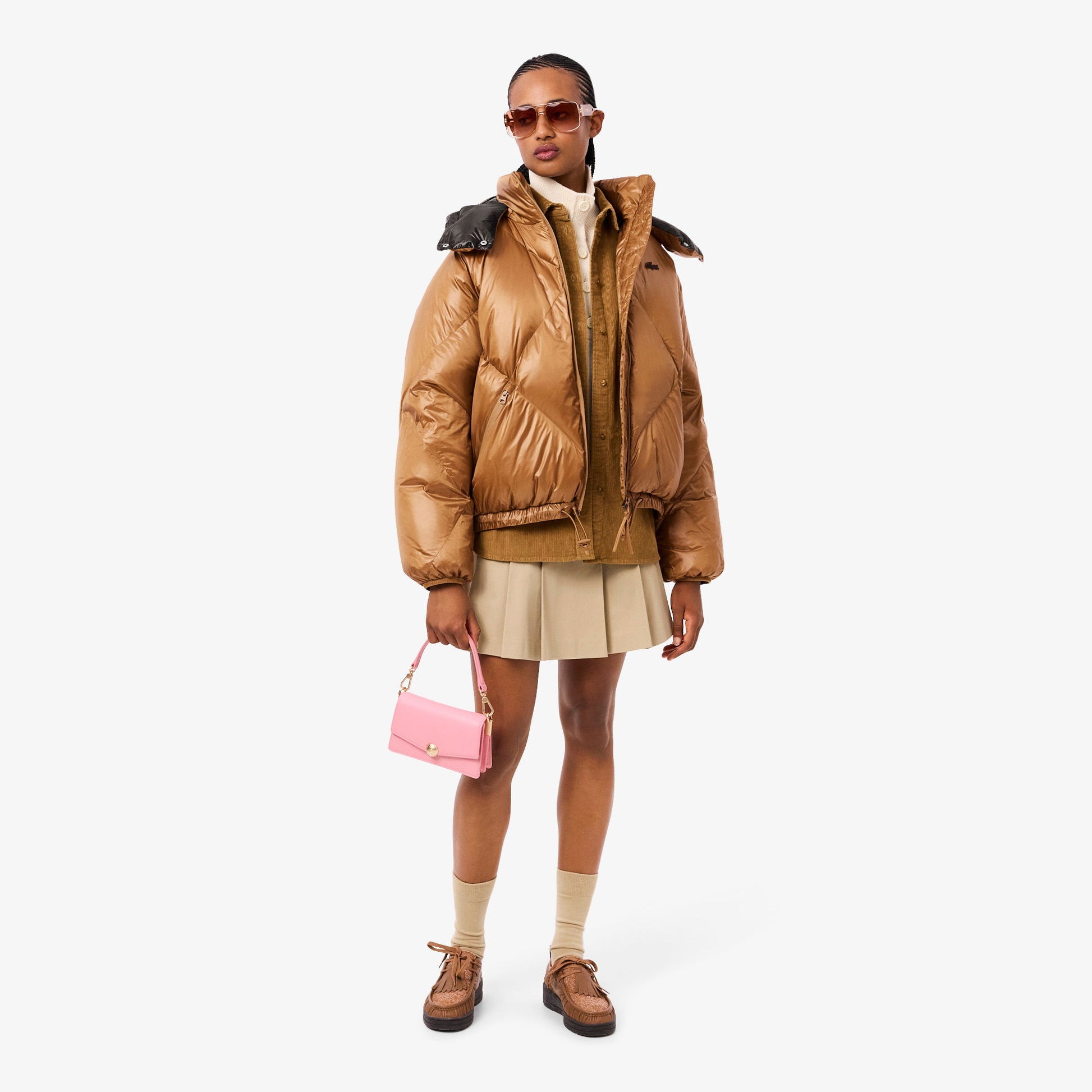 Lacoste Kadın Oversize Fit Kapüşonlu Kapitone Açık Kahverengi Mont