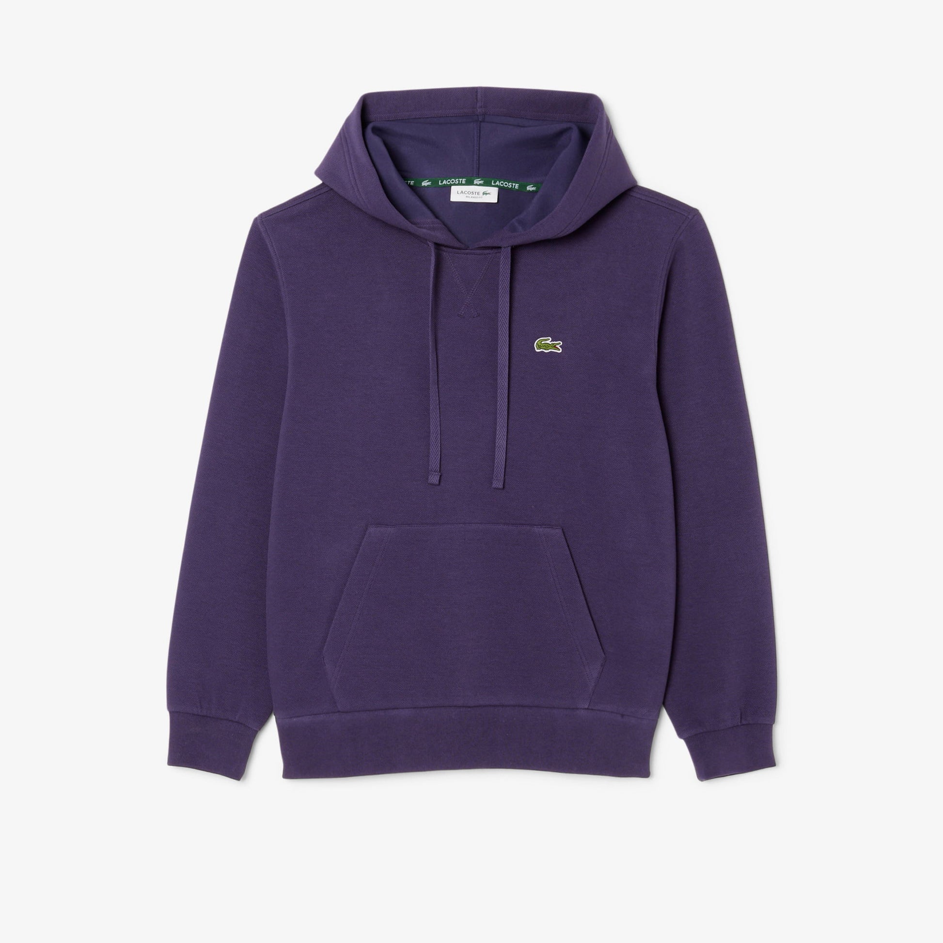 Yumuşak çift kat piqué kumaştan üretilen Lacoste kapüşonlu sweatshirt, rahat kesimi ve fonksiyonel detaylarıyla öne çıkar. Hafif düşük omuz yapısı, ayarlanabilir kapüşon ve kanguru cebi ile günlük stilinize konfor katar. Organik pamuk ve geri dönüştürülmüş polyester içeriğiyle sürdürülebilir bir tercih sunarken, nervürlü manşet ve etek ucu sayesinde formunu korur.