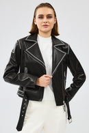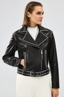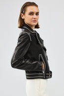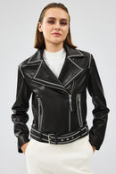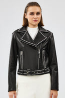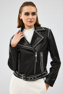 Lady Kadın Siyah Kısa Deri Ceket