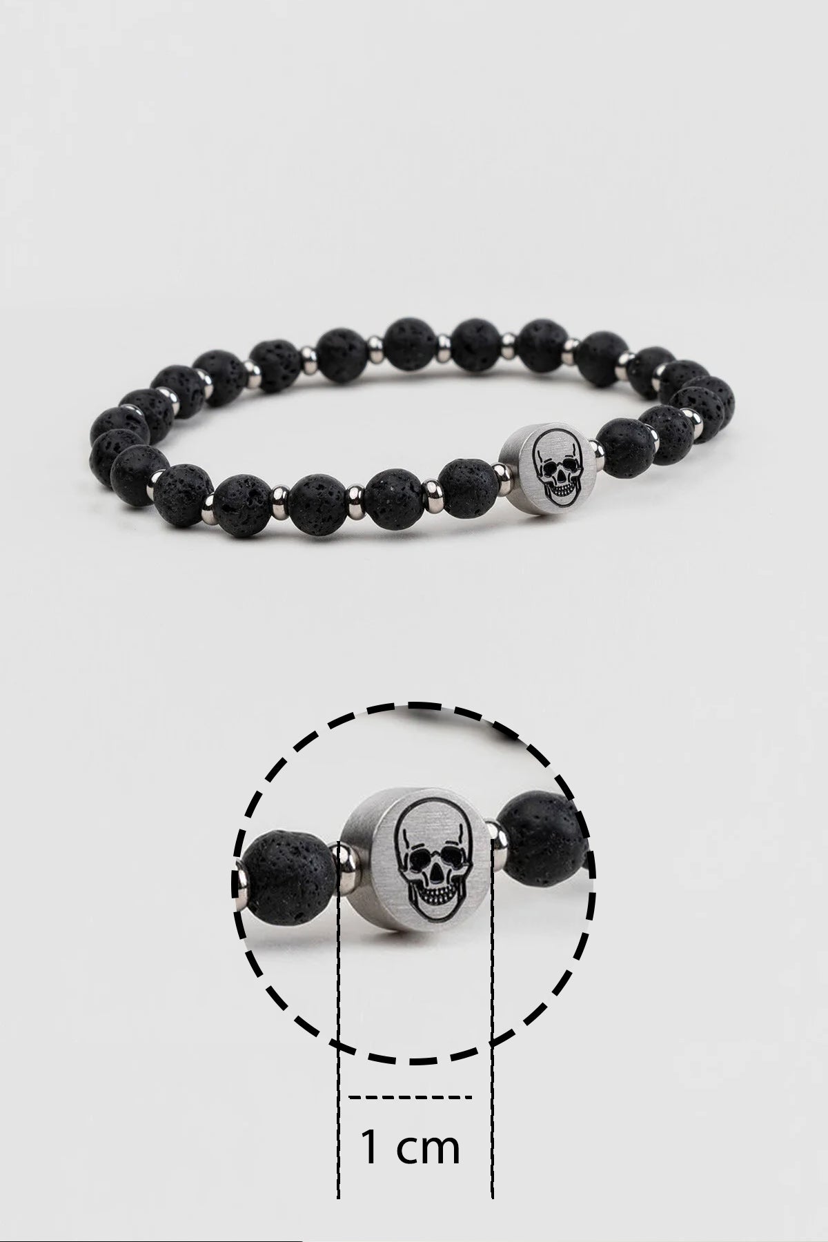 Lav Taşlı Kurukafa Figürlü Çelik Erkek Bileklik 02434270220