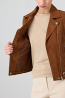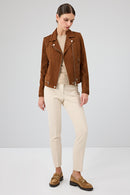 Layla Kadın Kahverengi Biker Süet Deri Ceket