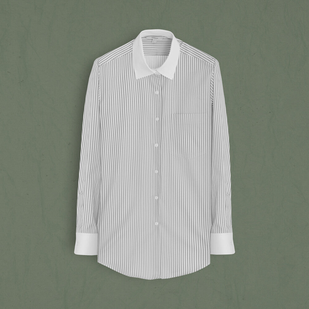 Lidya Çizgili Açık Gri Kadın Gömlek ile tarzına renk kat! Kadın Gömlek modellerini SARAR kalitesiyle anında satın alın!