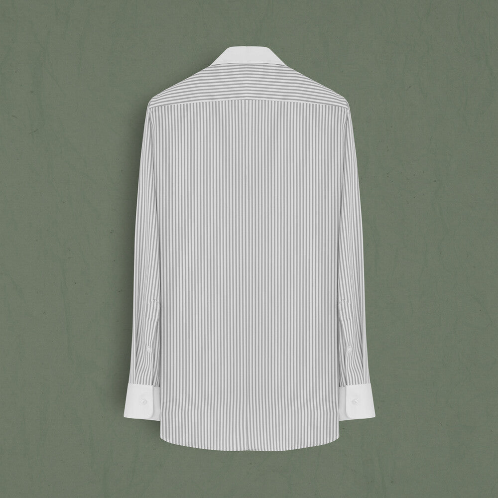 Lidya Çizgili Açık Gri Kadın Gömlek