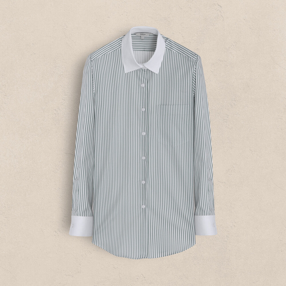Lidya Çizgili Haki Kadın Gömlek ile tarzına renk kat! Kadın Gömlek modellerini SARAR kalitesiyle anında satın alın!