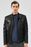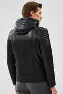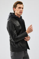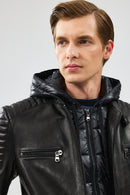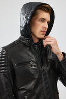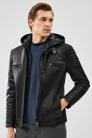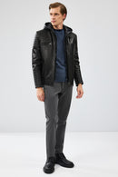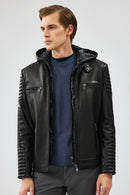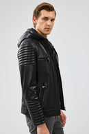 Lyon Erkek Siyah Kapüşonlu Deri Ceket