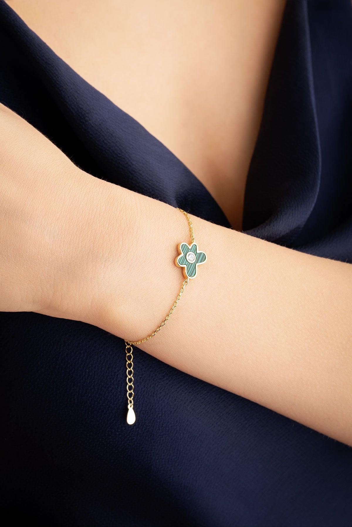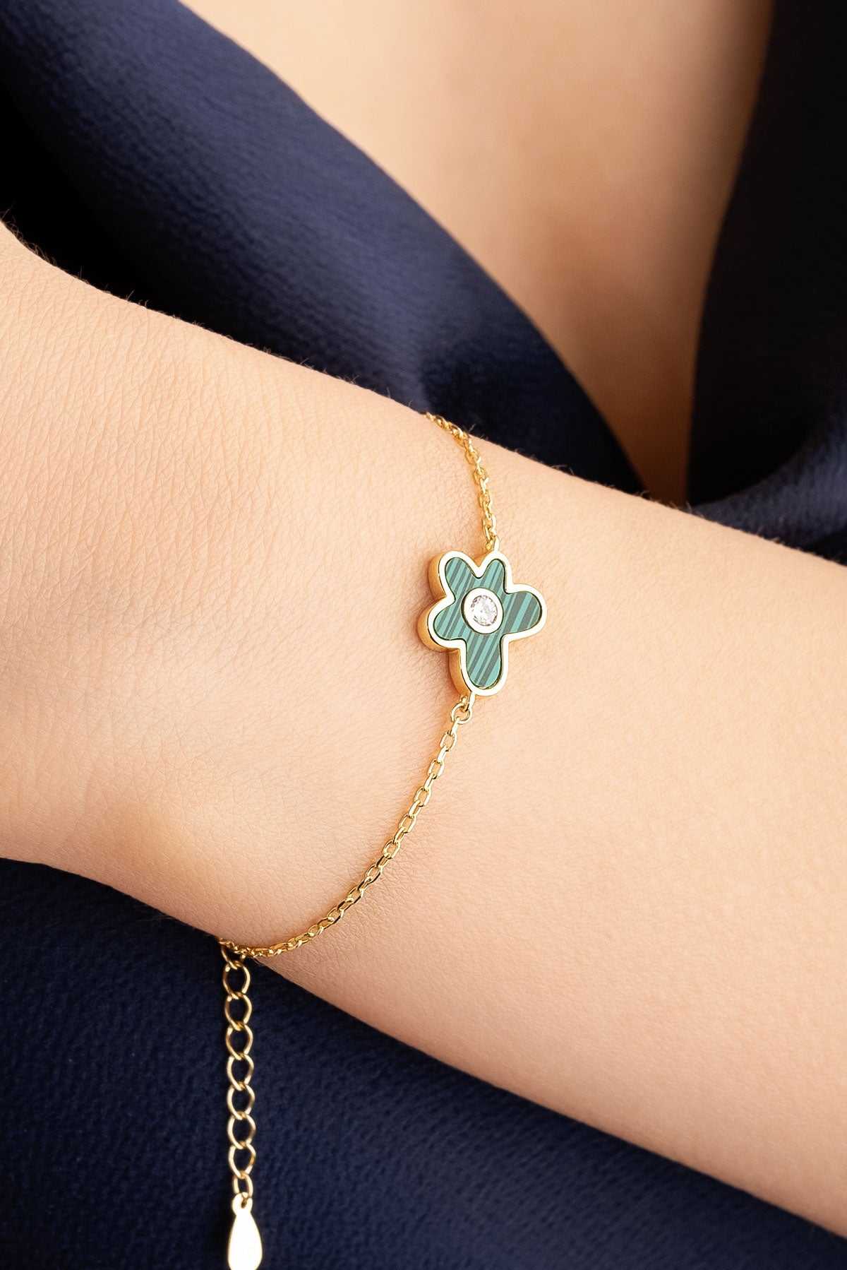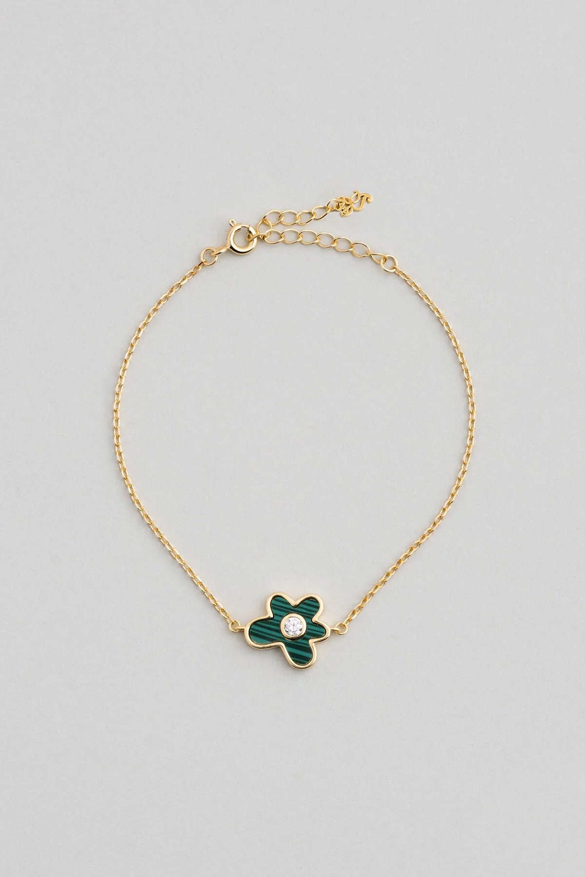 Malahit Çiçeği 18 Ayar Sarı Altın Kaplama 19 Cm Gümüş Bileklik 07299470444