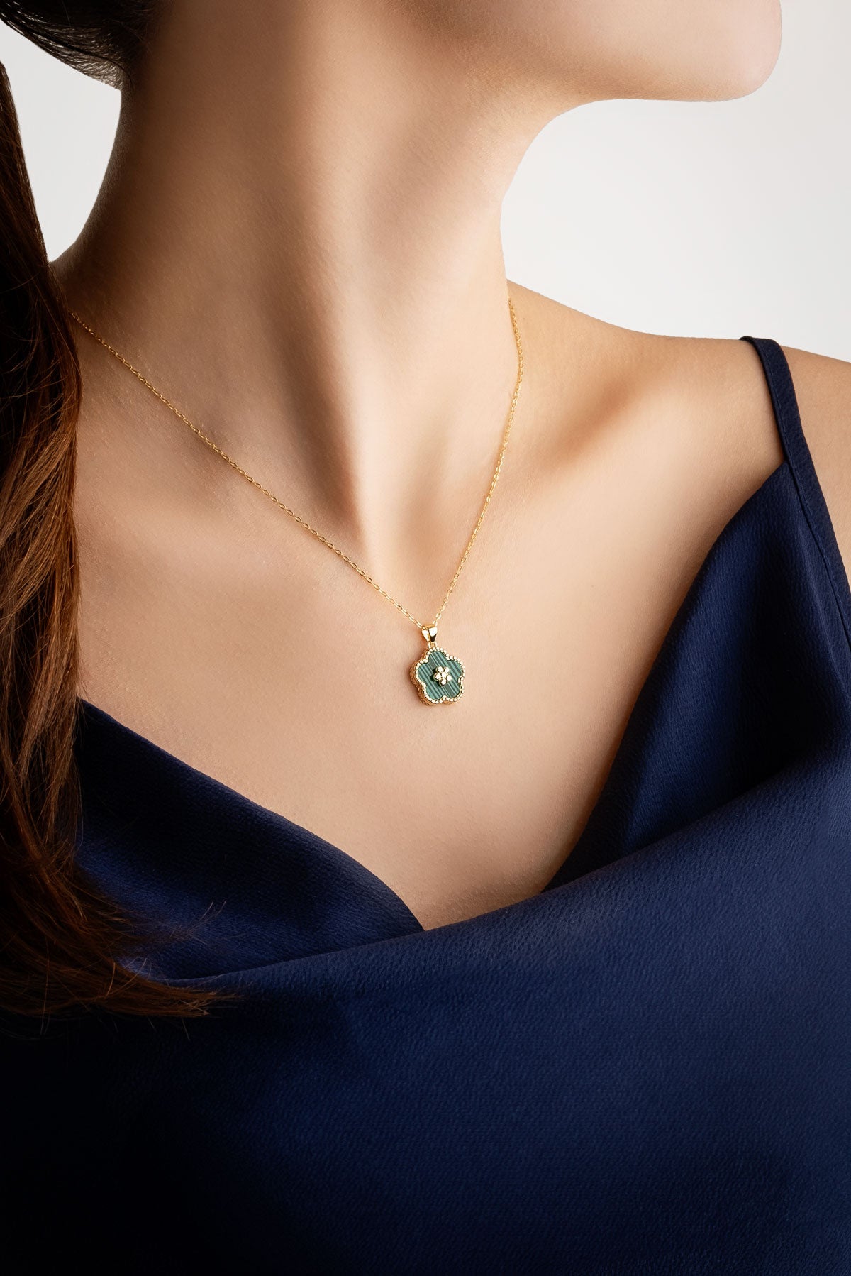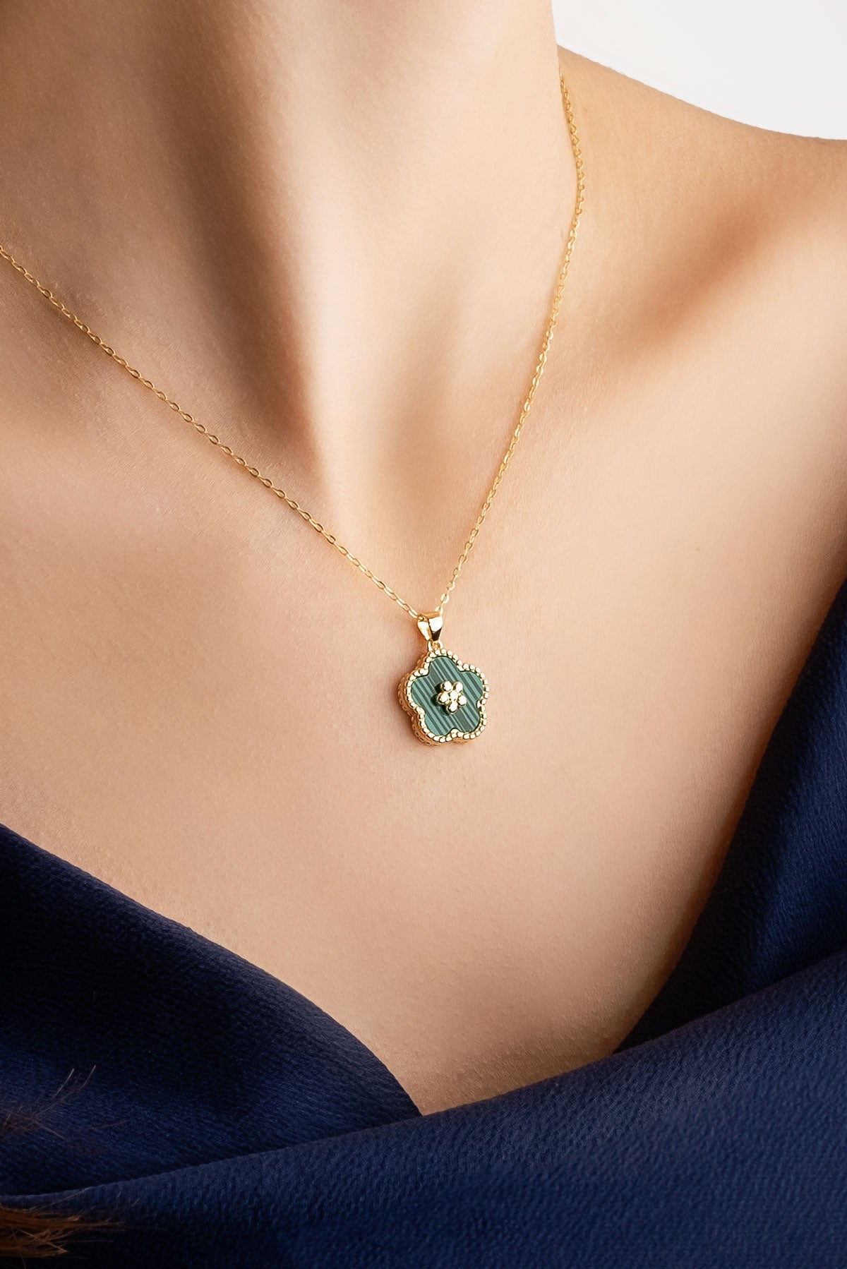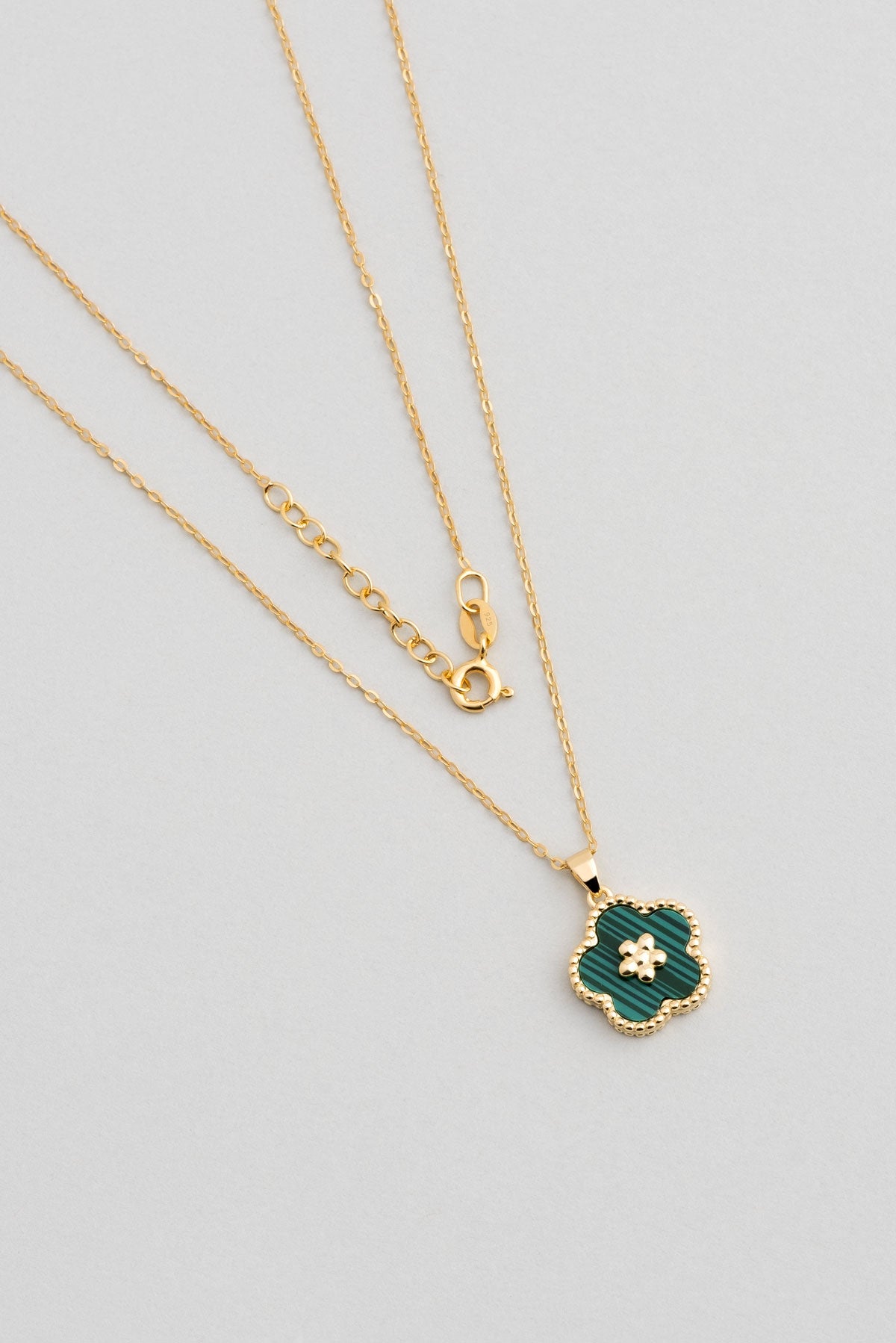 Malahit Çiçeği 18 Ayar Sarı Altın Kaplama 43 Cm Gümüş Minimal Kolye 07299410444