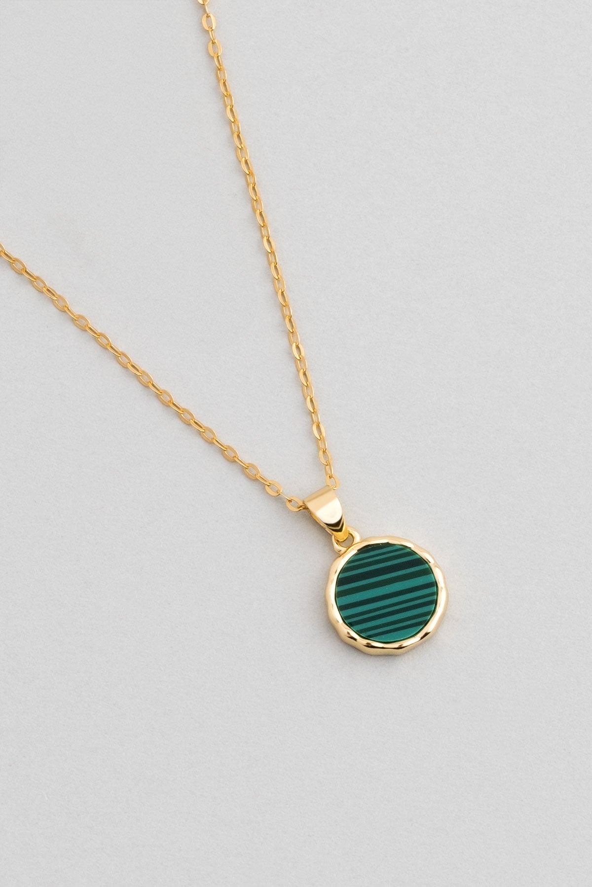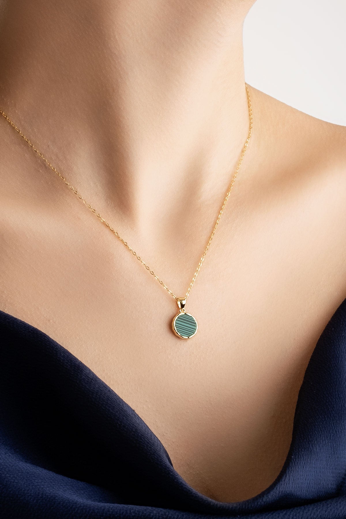 Malahit Işığı 18 Ayar Sarı Altın Kaplama 43 Cm Gümüş Minimal Kolye 07299540444