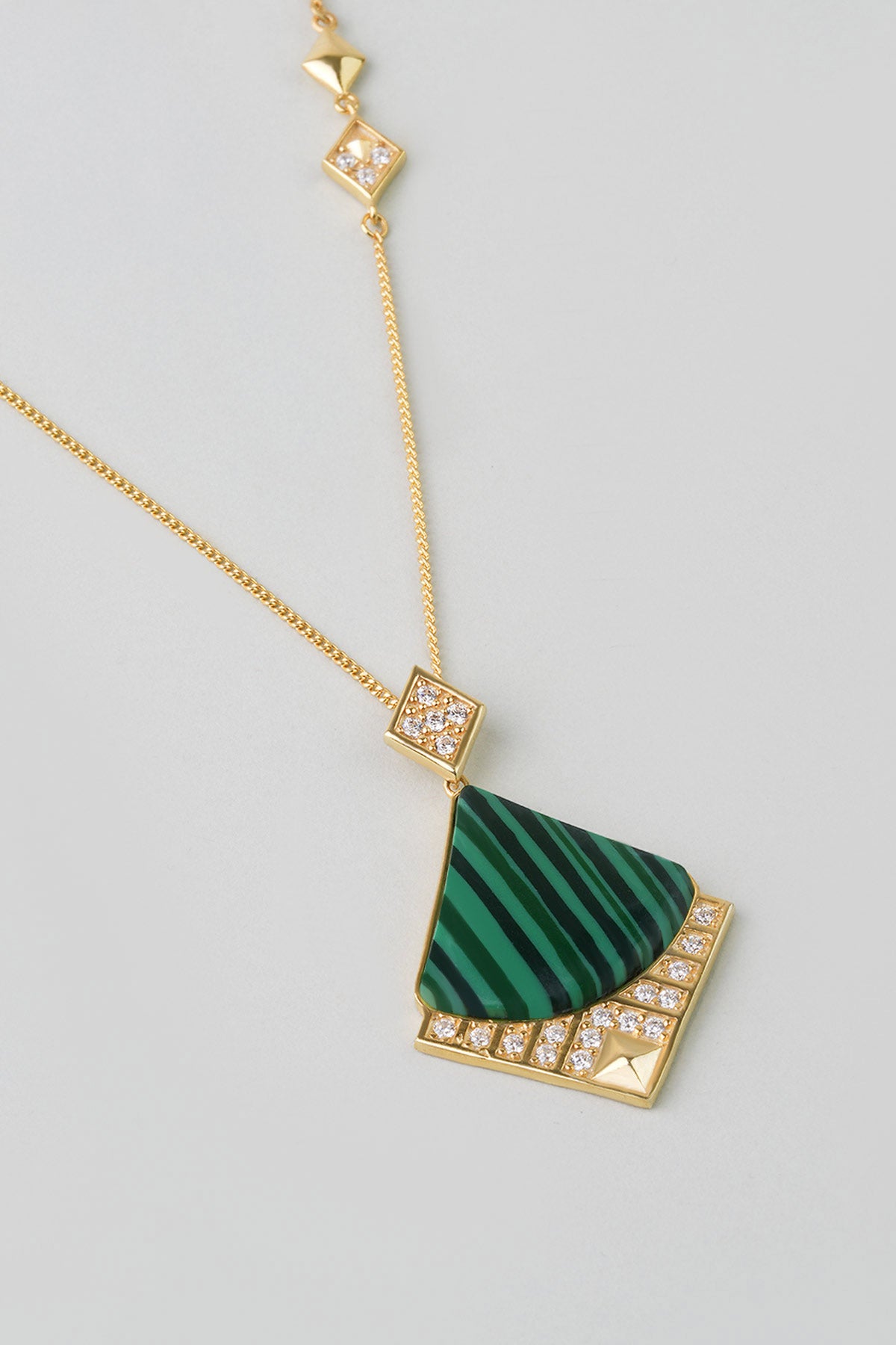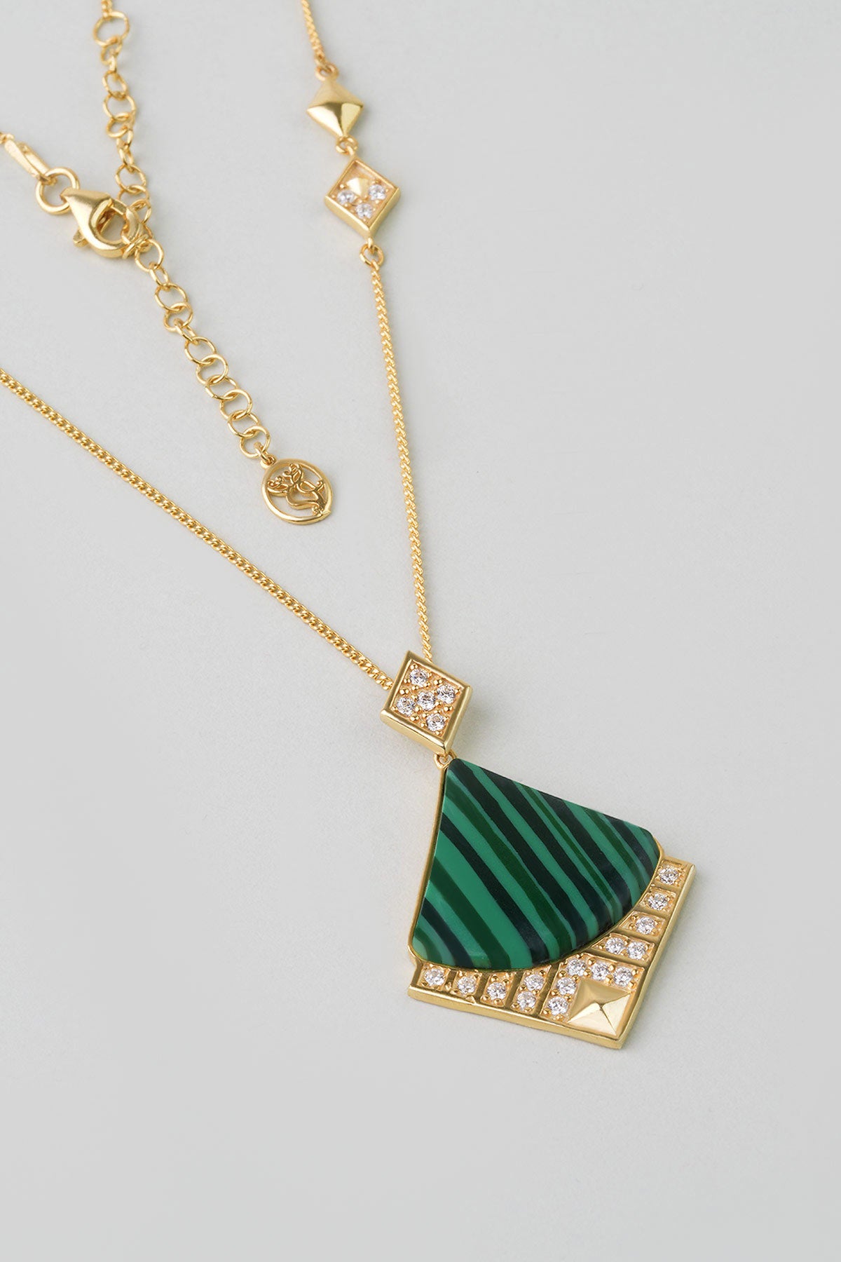 Malahit Şıklığı 18 Ayar Sarı Altın Kaplama 47 Cm Gümüş Kolye 07310720444