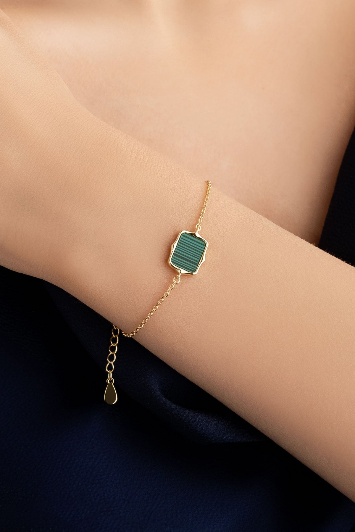 Malahit Taşlı 18 Ayar Sarı Altın Kaplama 21 Cm Gümüş Bileklik 07299580444