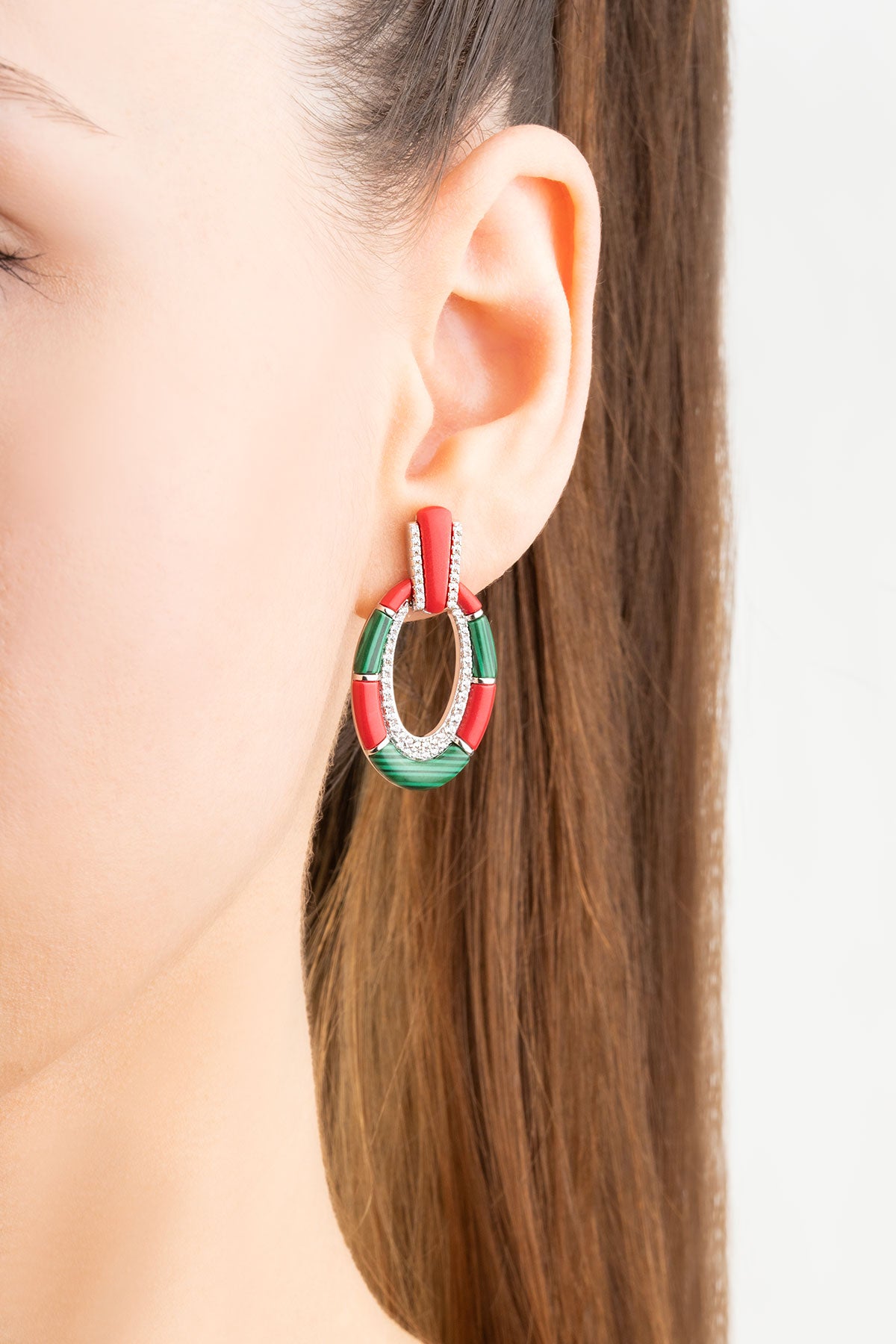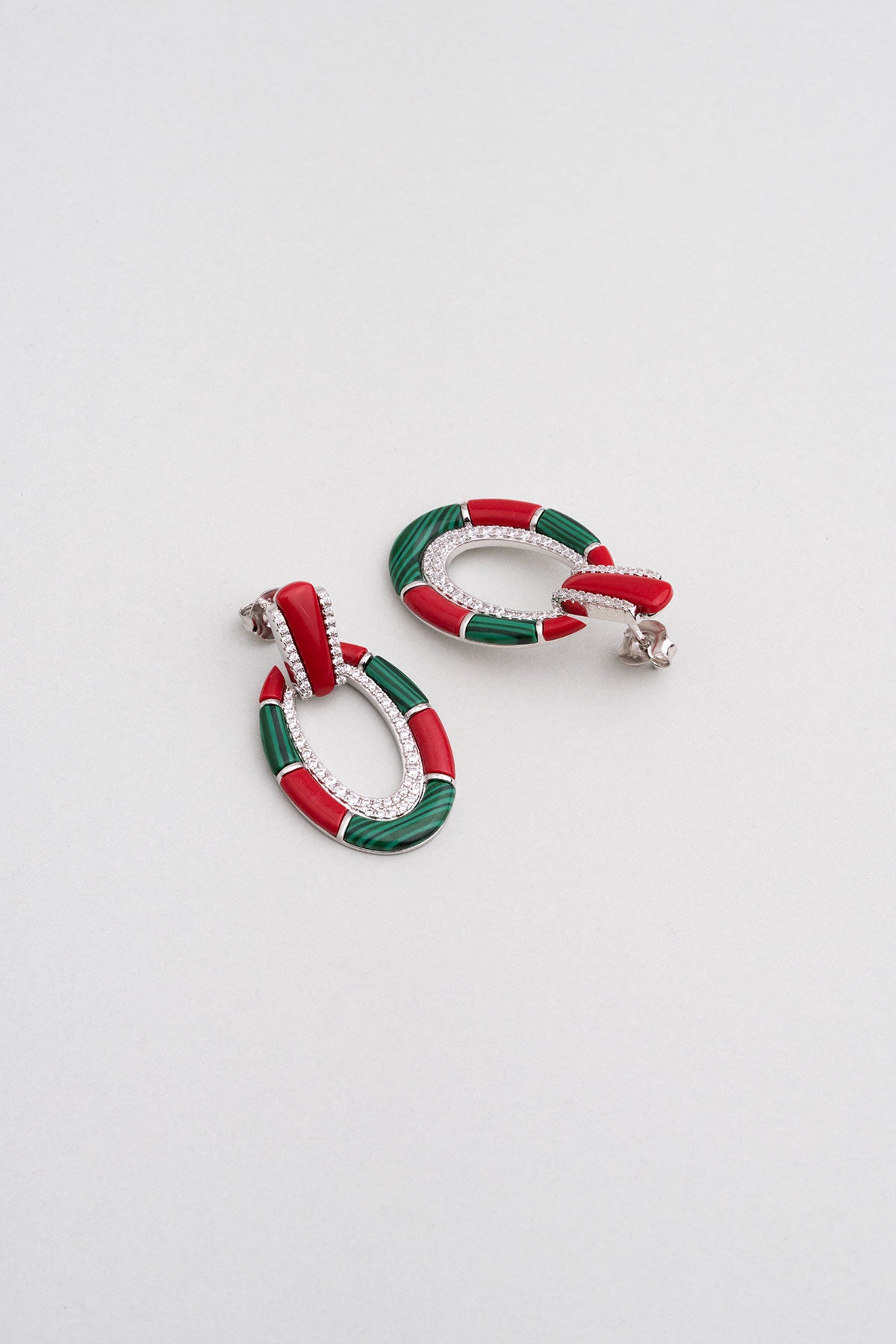 Malahit Ve Mercan Taşlı 18 Ayar Beyaz Altın Kaplama Gümüş Tasarım Kolye 07301390899