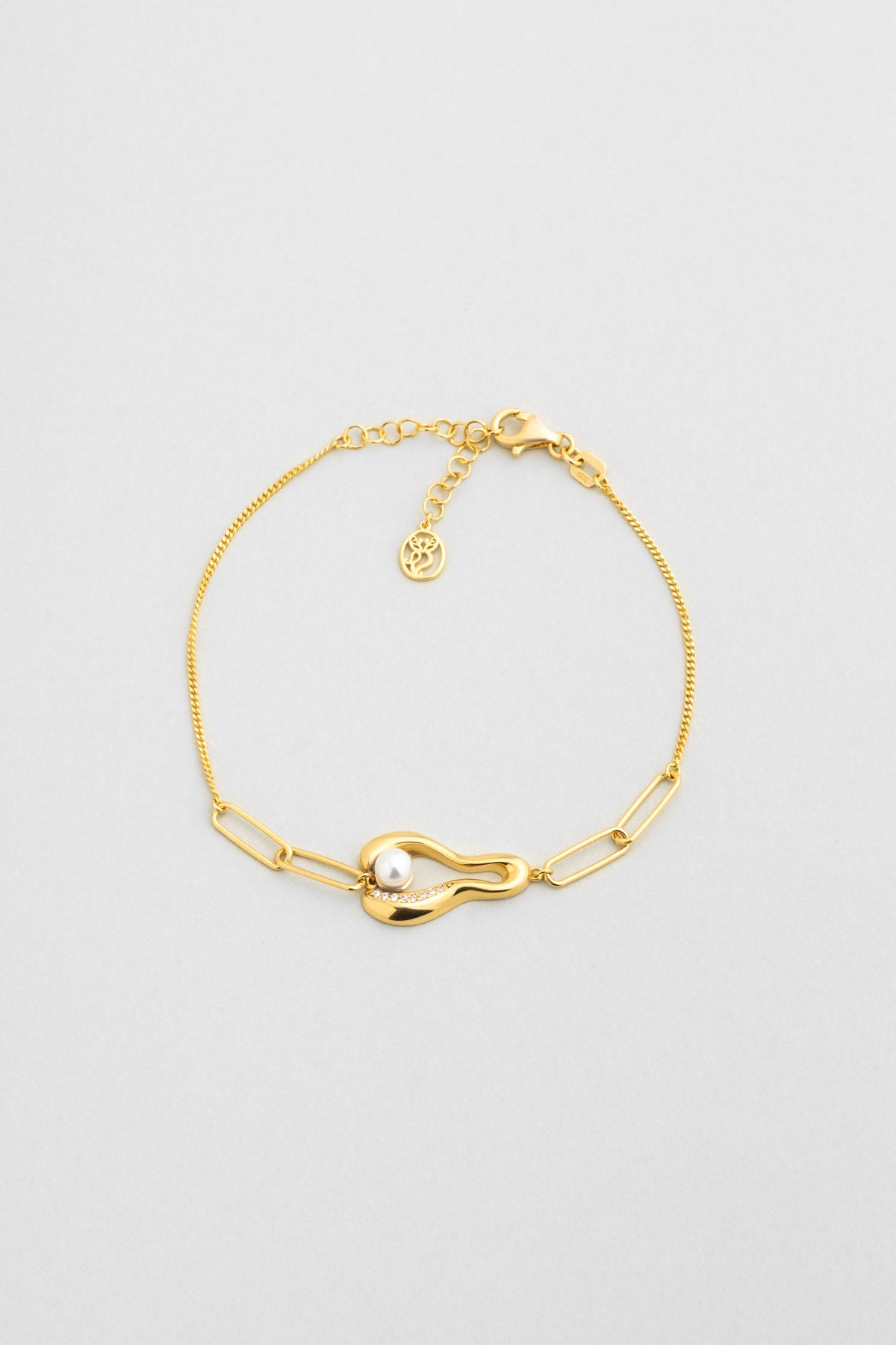 Mariana 18 Ayar Sarı Altın Kaplama 19 Cm Gümüş Inci Bileklik 07316096244