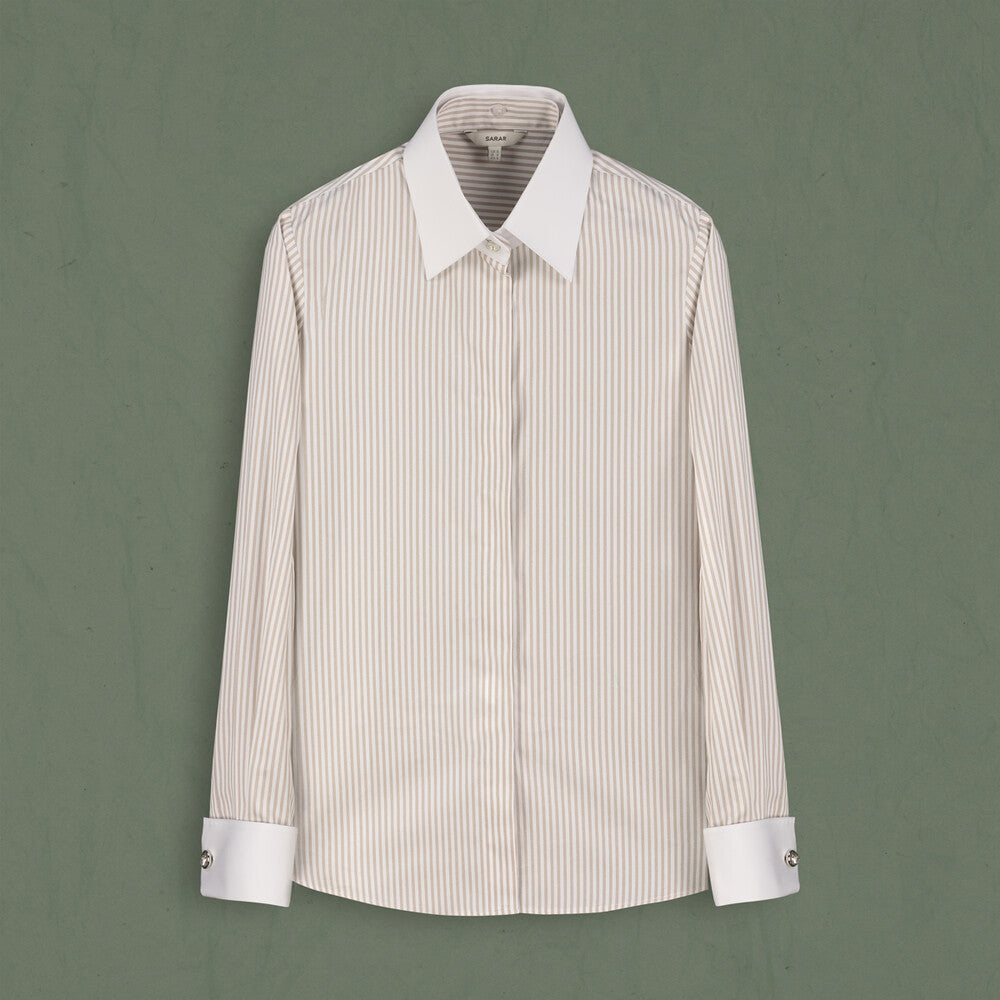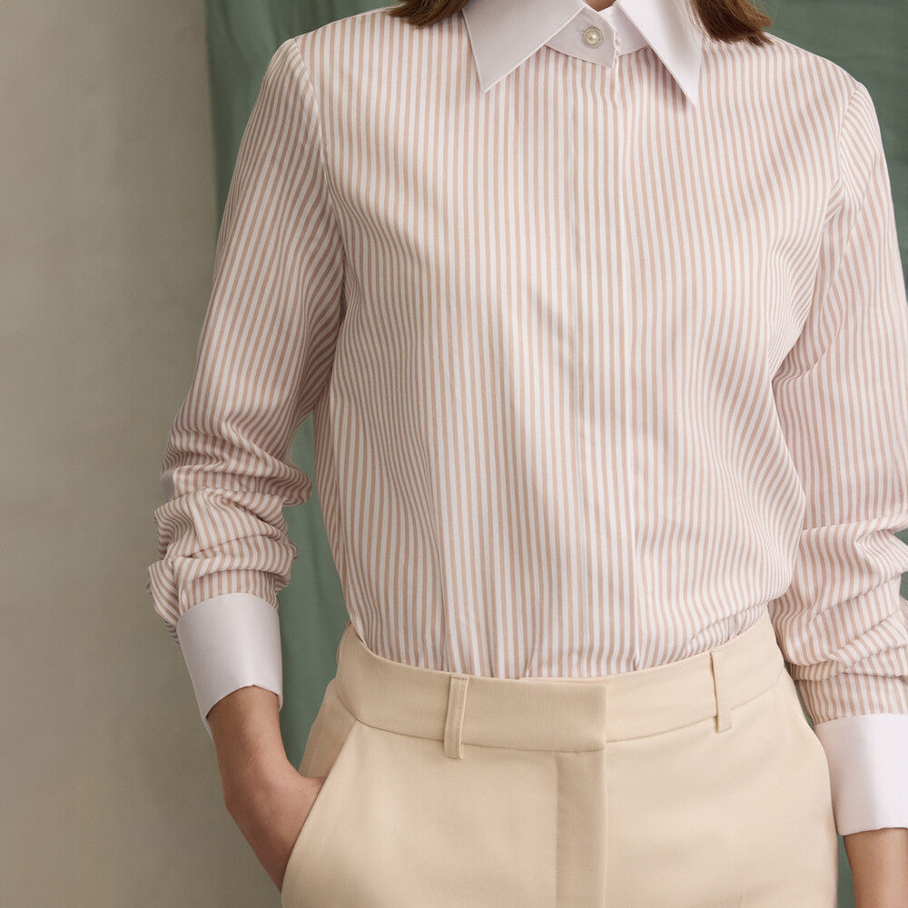 Matilda Çizgili Pudra Gömlek ile tarzına renk kat! Kadın Gömlek modellerini SARAR kalitesiyle anında satın alın!