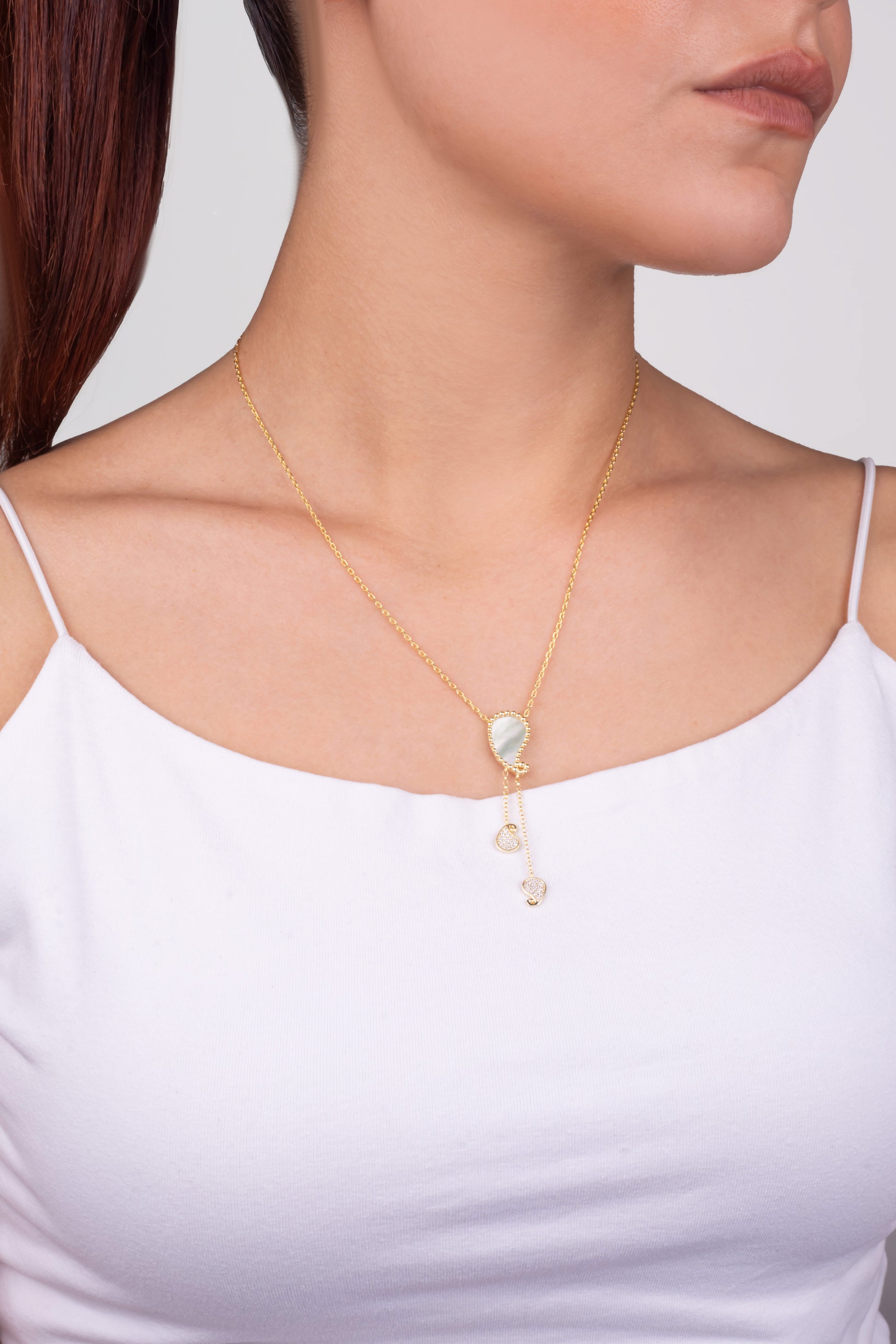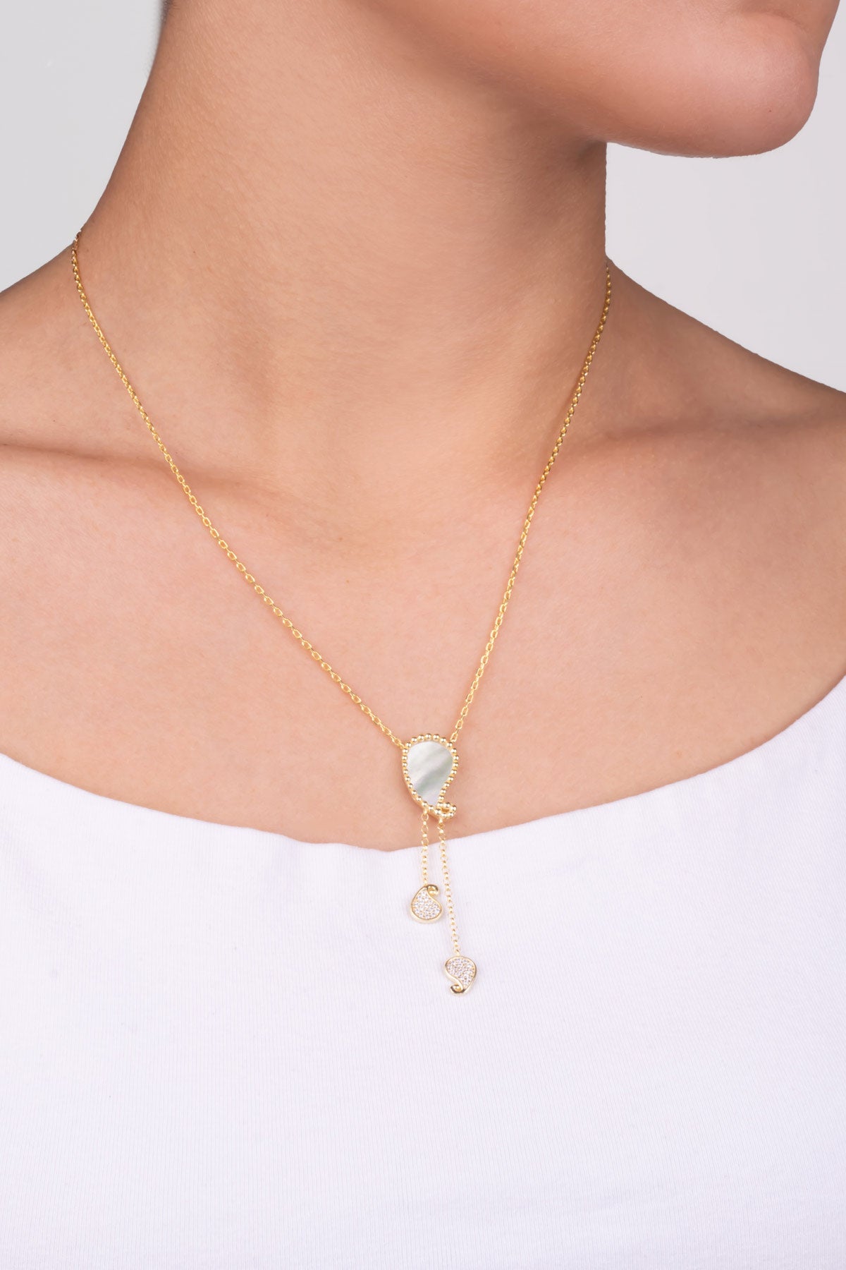 Mavera 18 Ayar Sarı Altın Kaplama 55 Cm Gümüş Sedef Kolye 07310654644