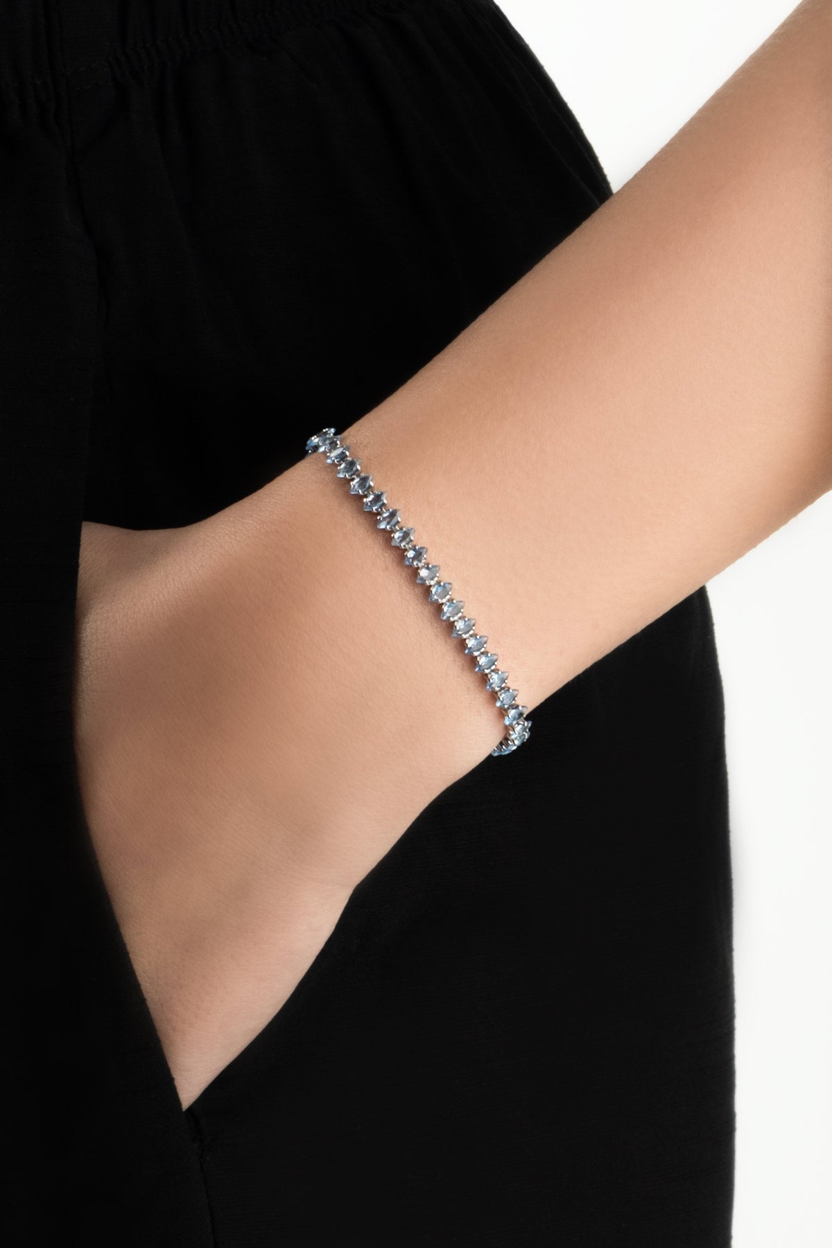 Mavi Aura 18 Ayar Beyaz Altın Kaplama Ayarlanabilir Gümüş Bileklik 5178260599