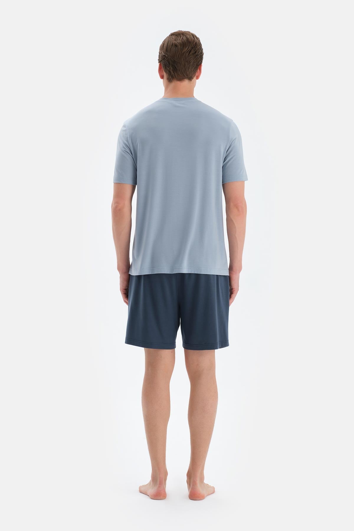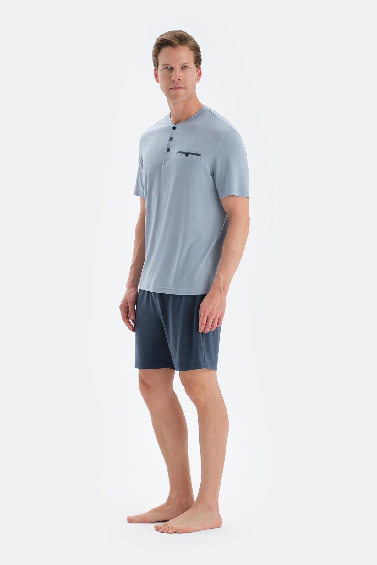 Mavi Pat Ve Fleto Cep Detaylı Tişört Şort Pijama Takımı