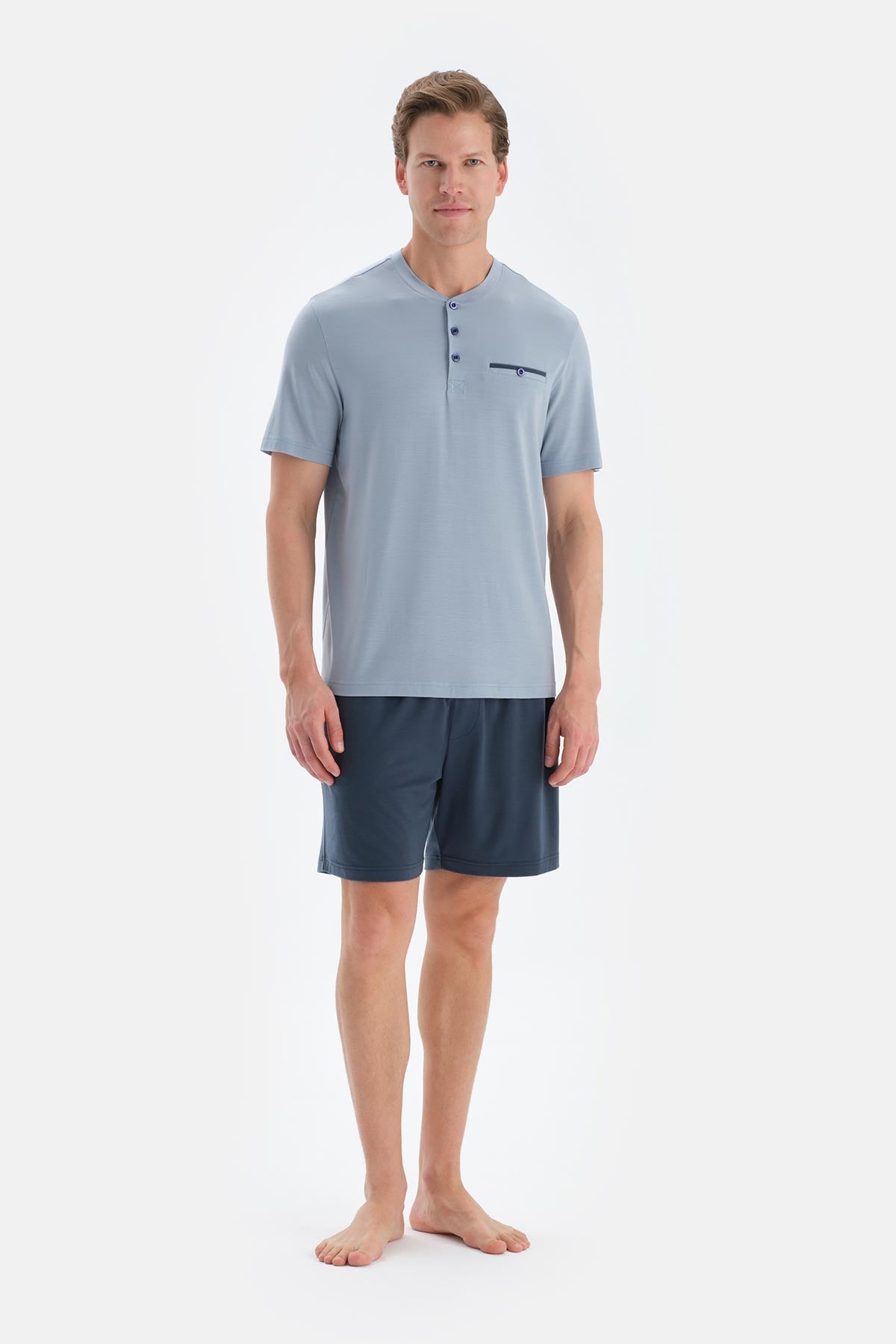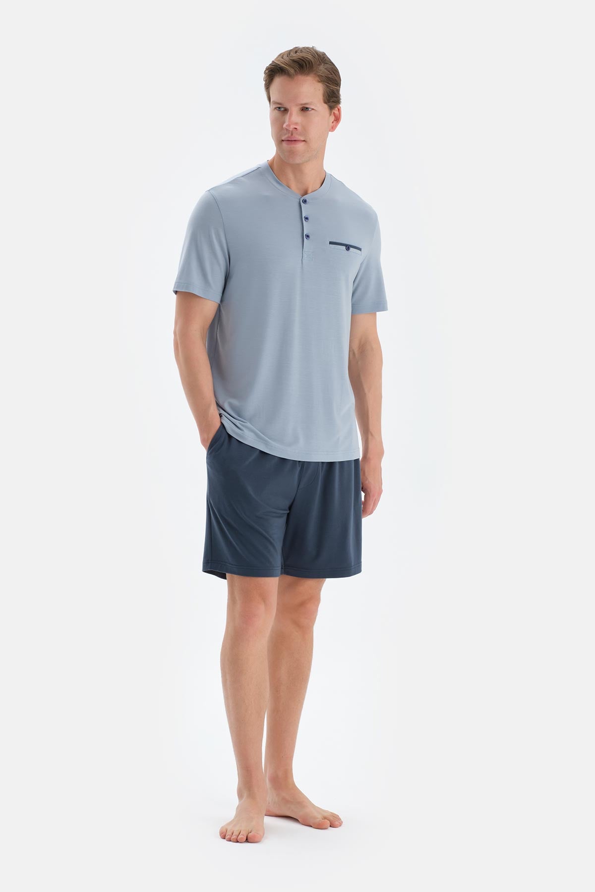 Mavi Pat Ve Fleto Cep Detaylı Tişört Şort Pijama Takımı 25SM85217ME_340 şimdi Dagi'de. Kaliteli, konforlu ve özel fiyatlarla sizleri bekliyor.