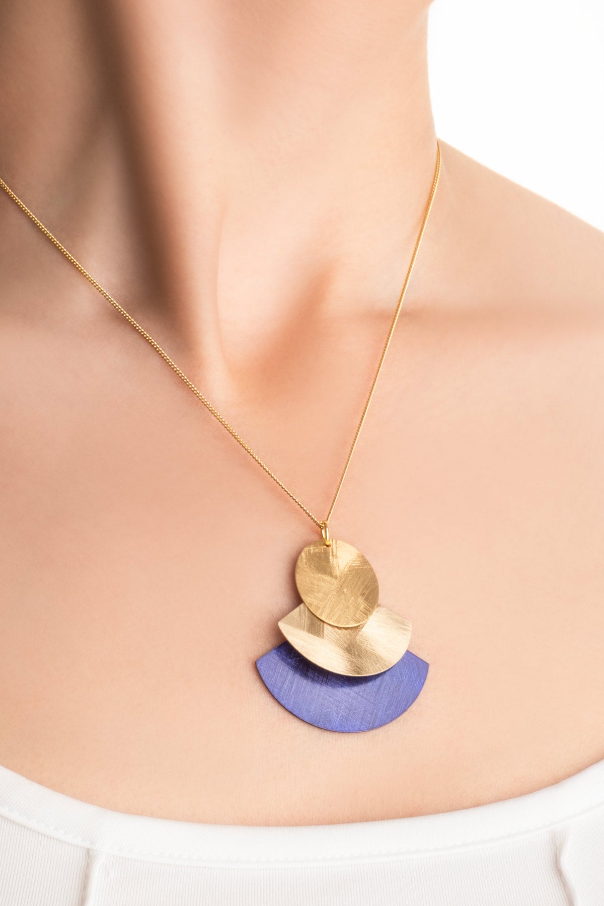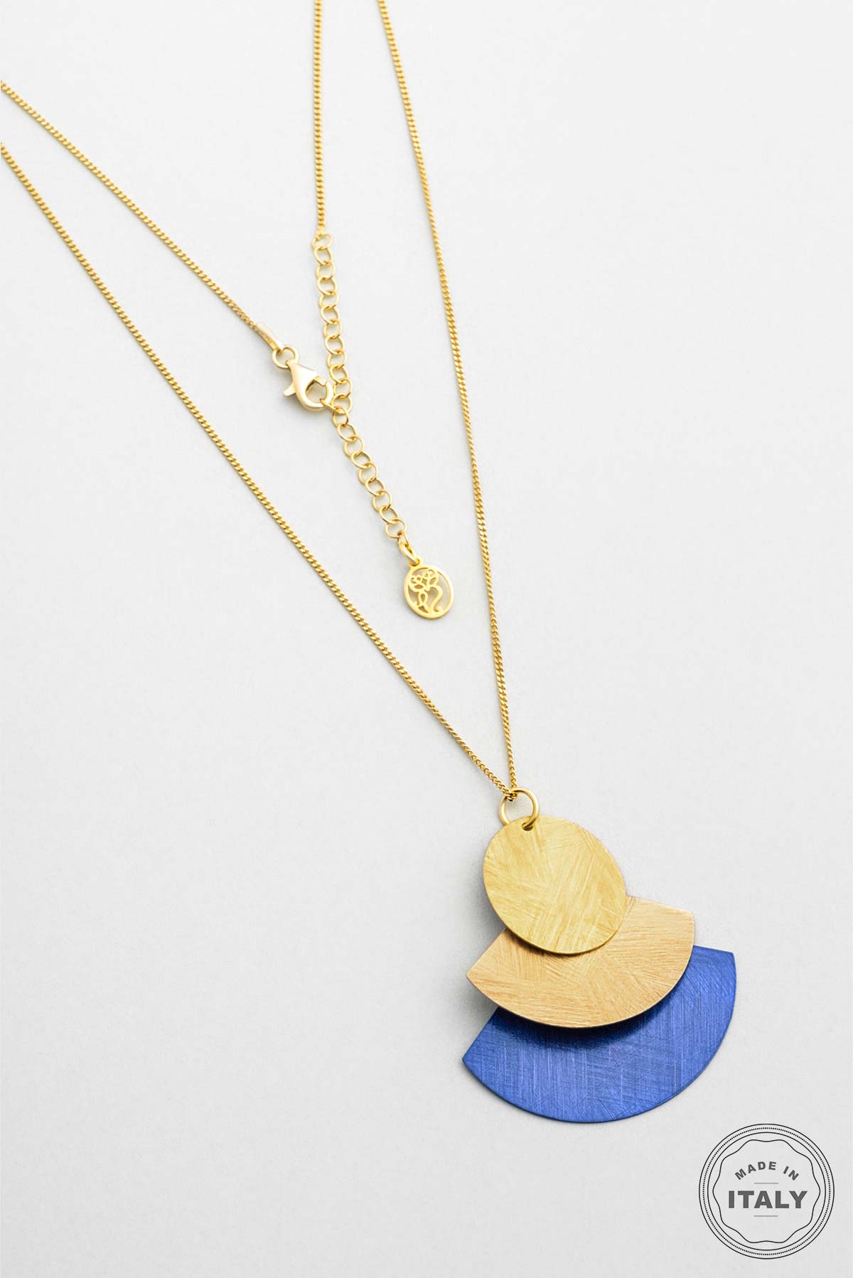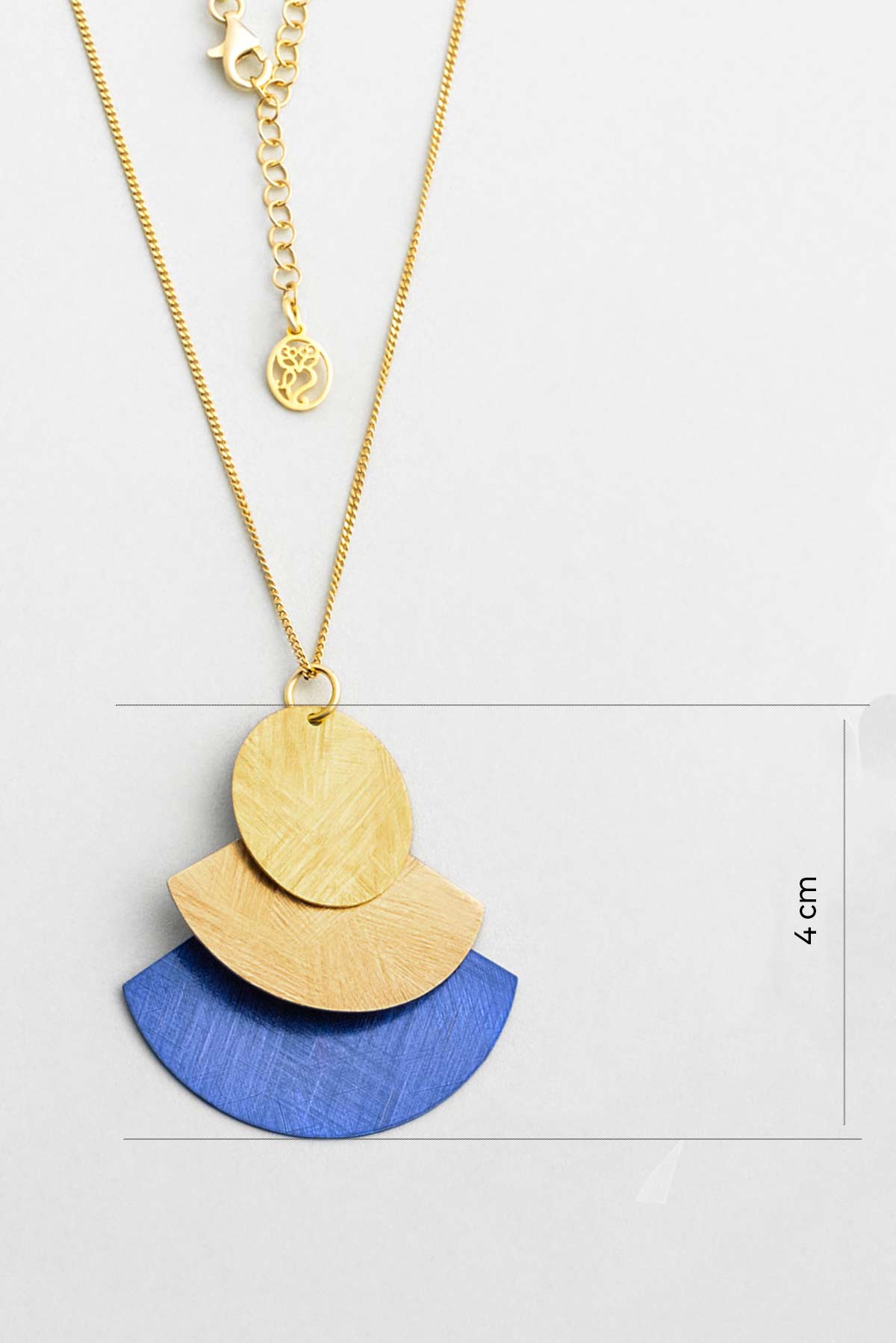 Mavi Petra Güneşi 18 Ayar Sarı Altın Kaplama 45 Cm Gümüş Tasarım Kolye 07307791244