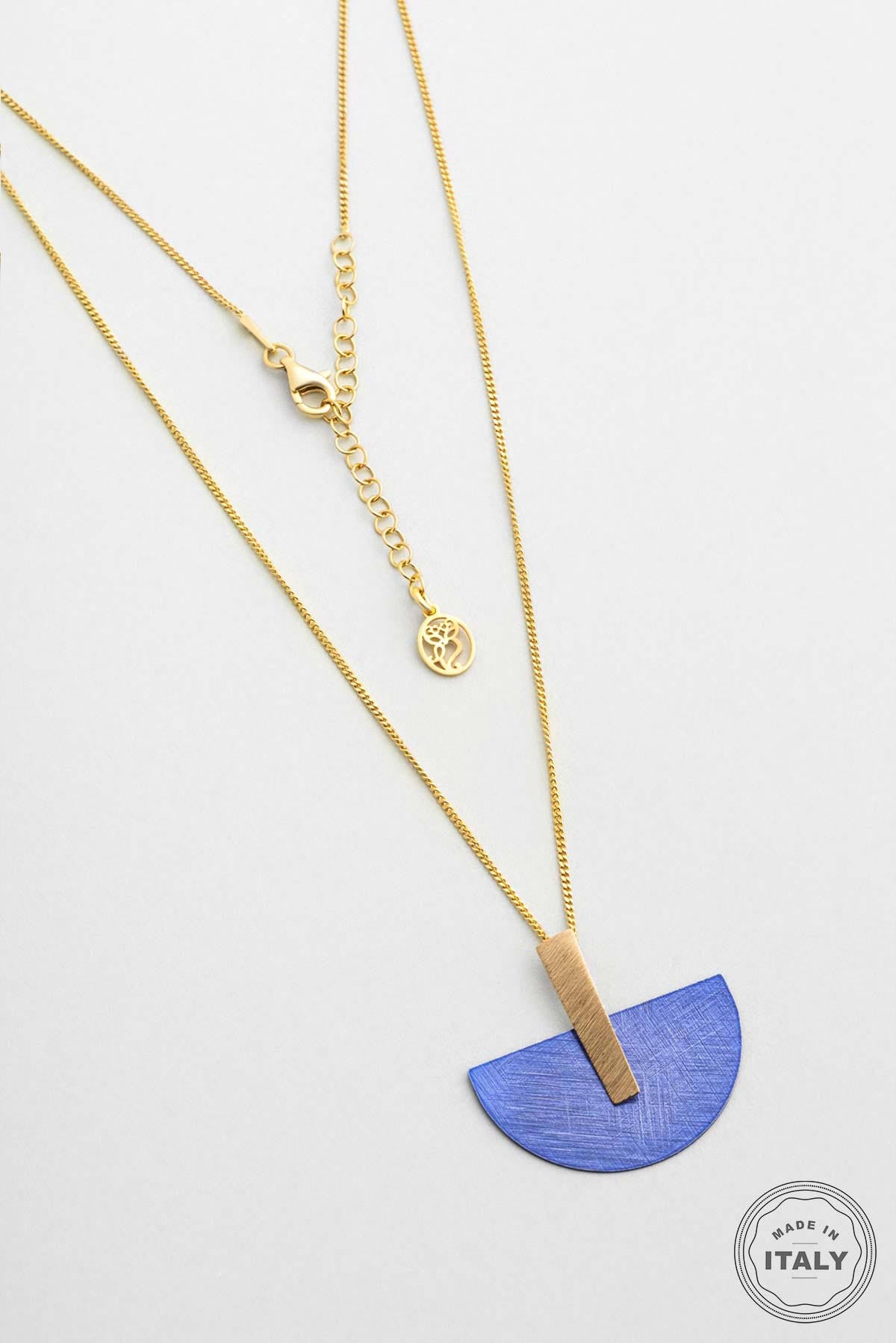Mavi Sahra 18 Ayar Sarı Altın Kaplama 45 Cm Gümüş Tasarım Kolye 07307751244