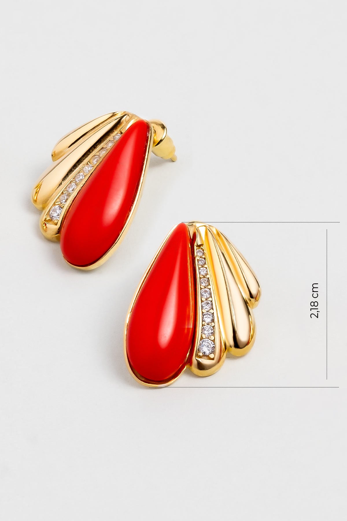 Mercan Kabuğu 18 Ayar Sarı Altın Kaplama Gümüş Küpe 07311150844