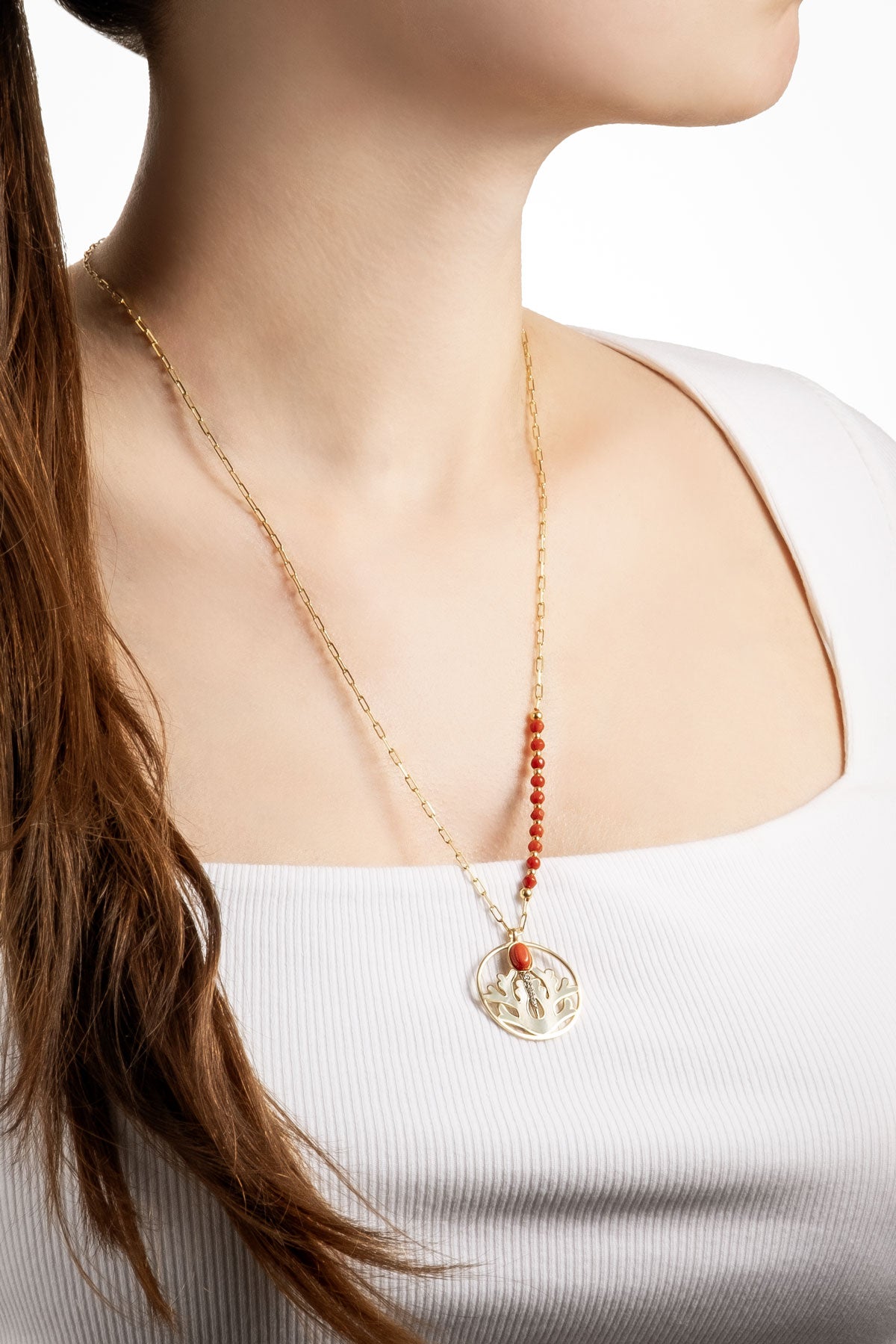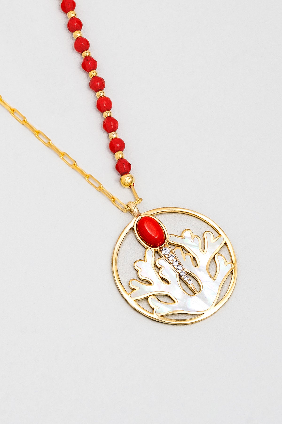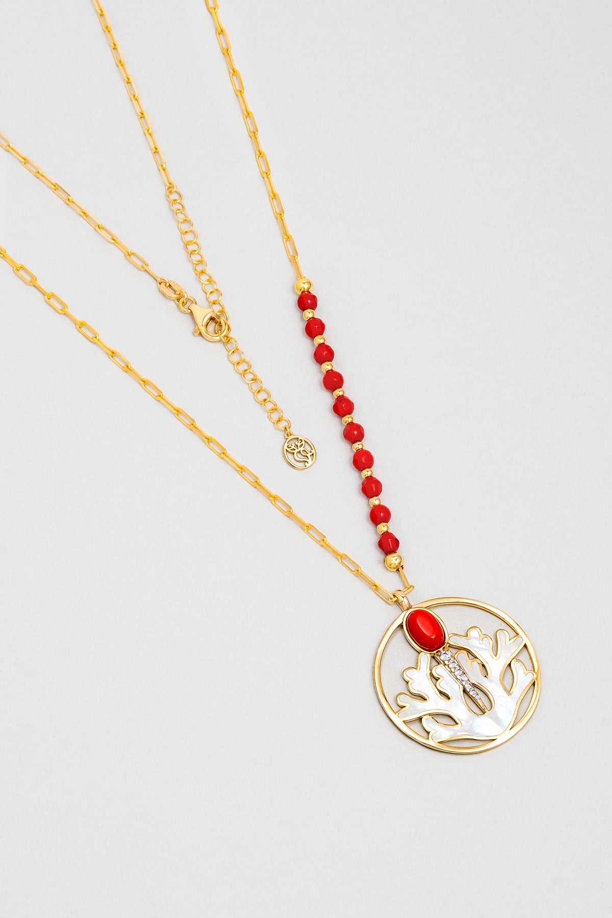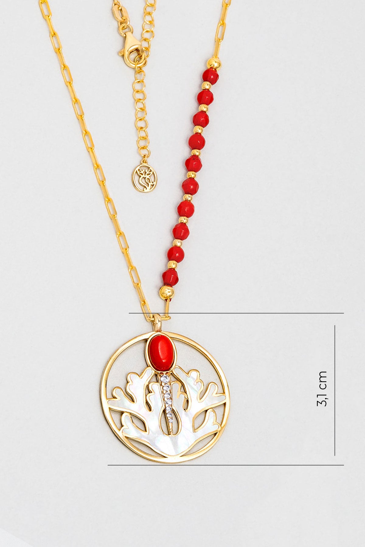 Mercan Tılsımı 18 Ayar Sarı Altın Kaplama 55 Cm Gümüş Kolye 07310910844
