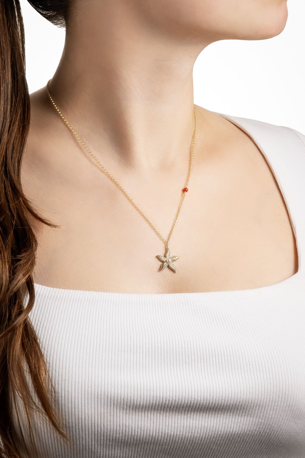 Mercan Yıldızı 18 Ayar Sarı Altın Kaplama 44 Cm Gümüş Kolye 07311006244