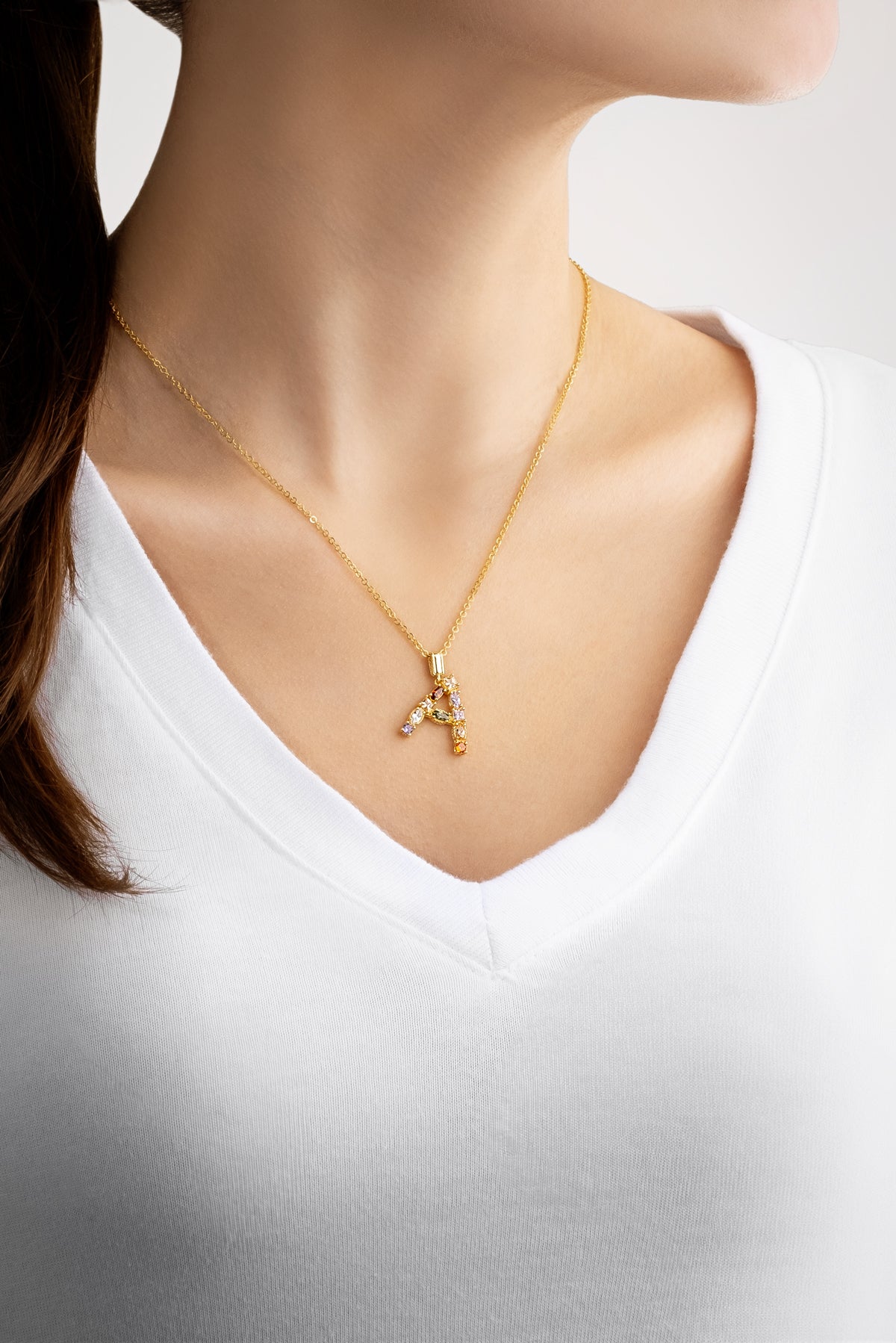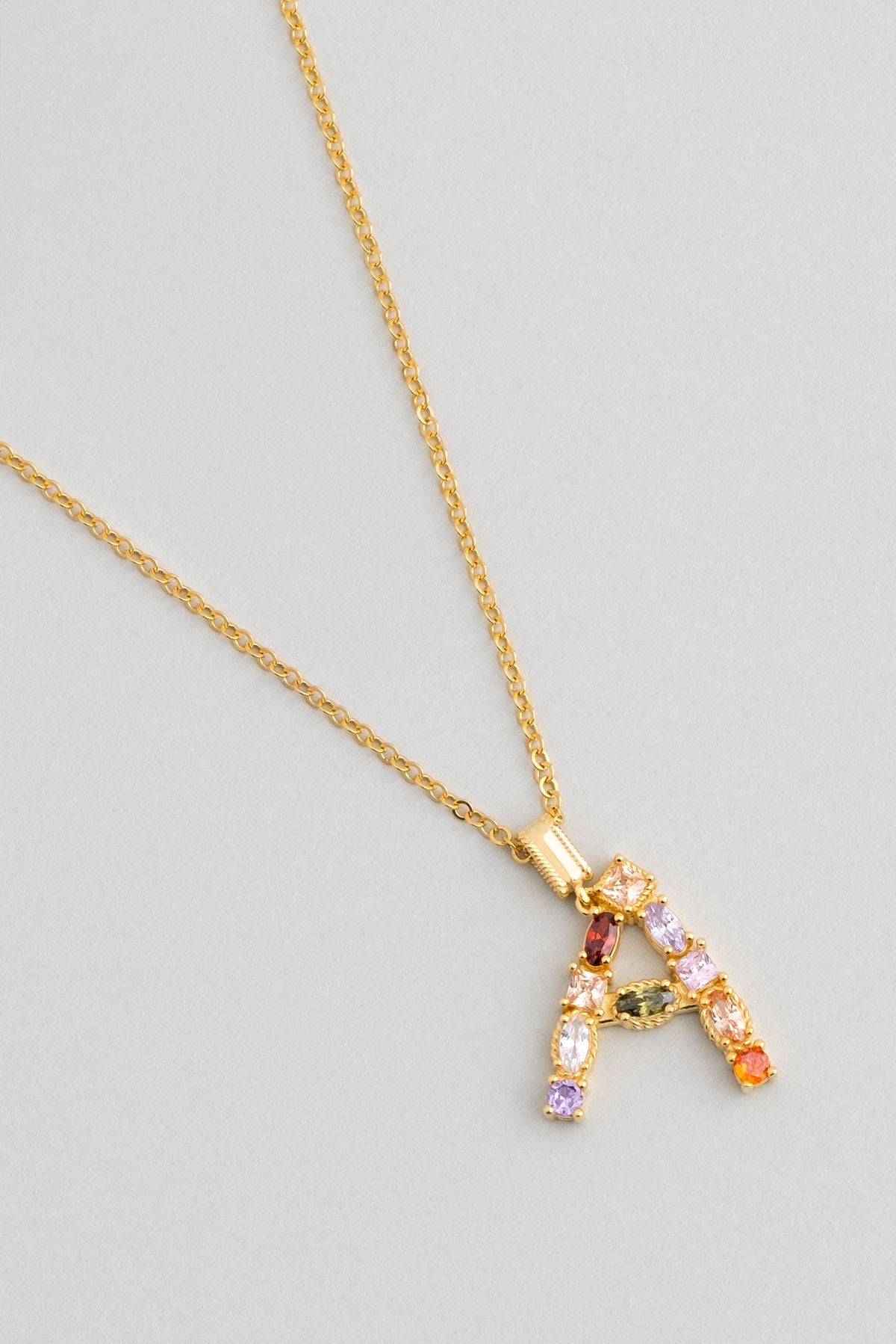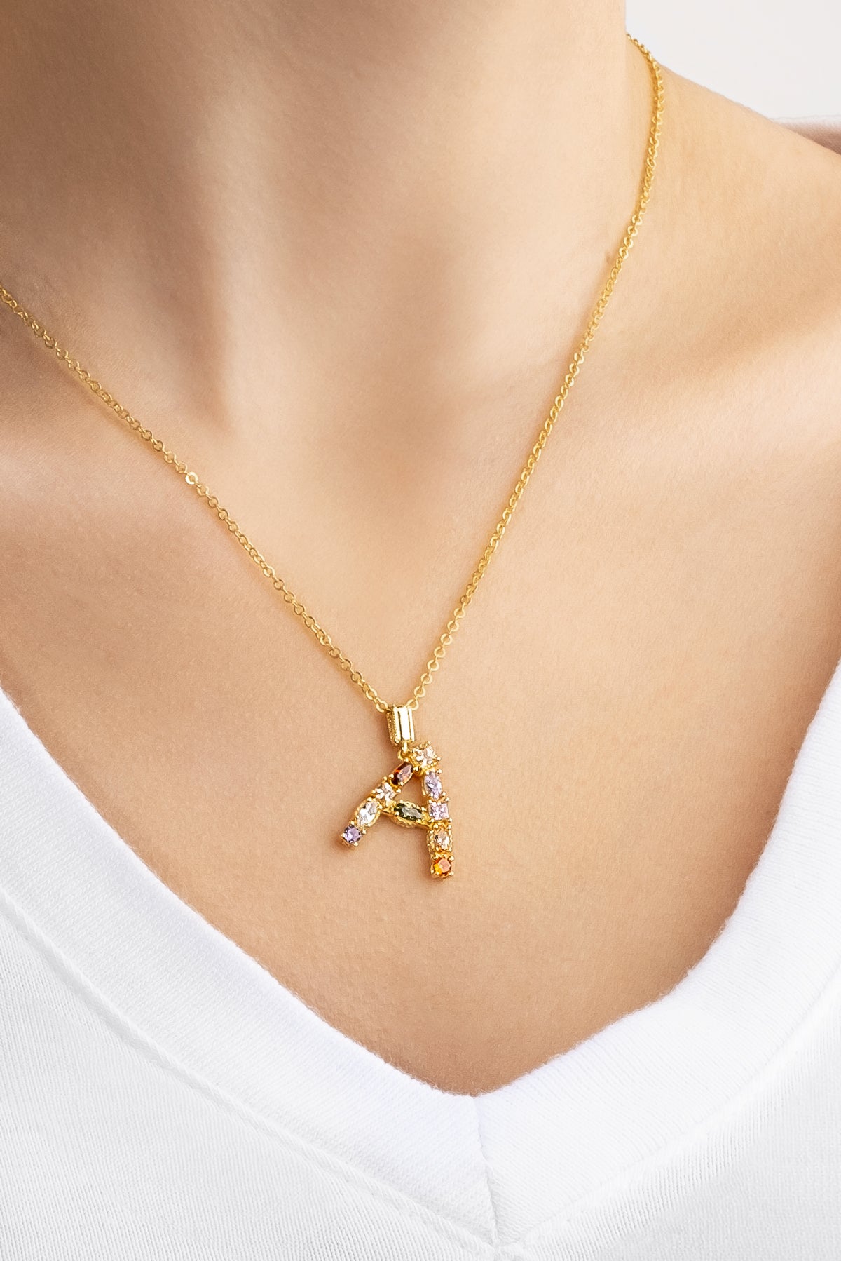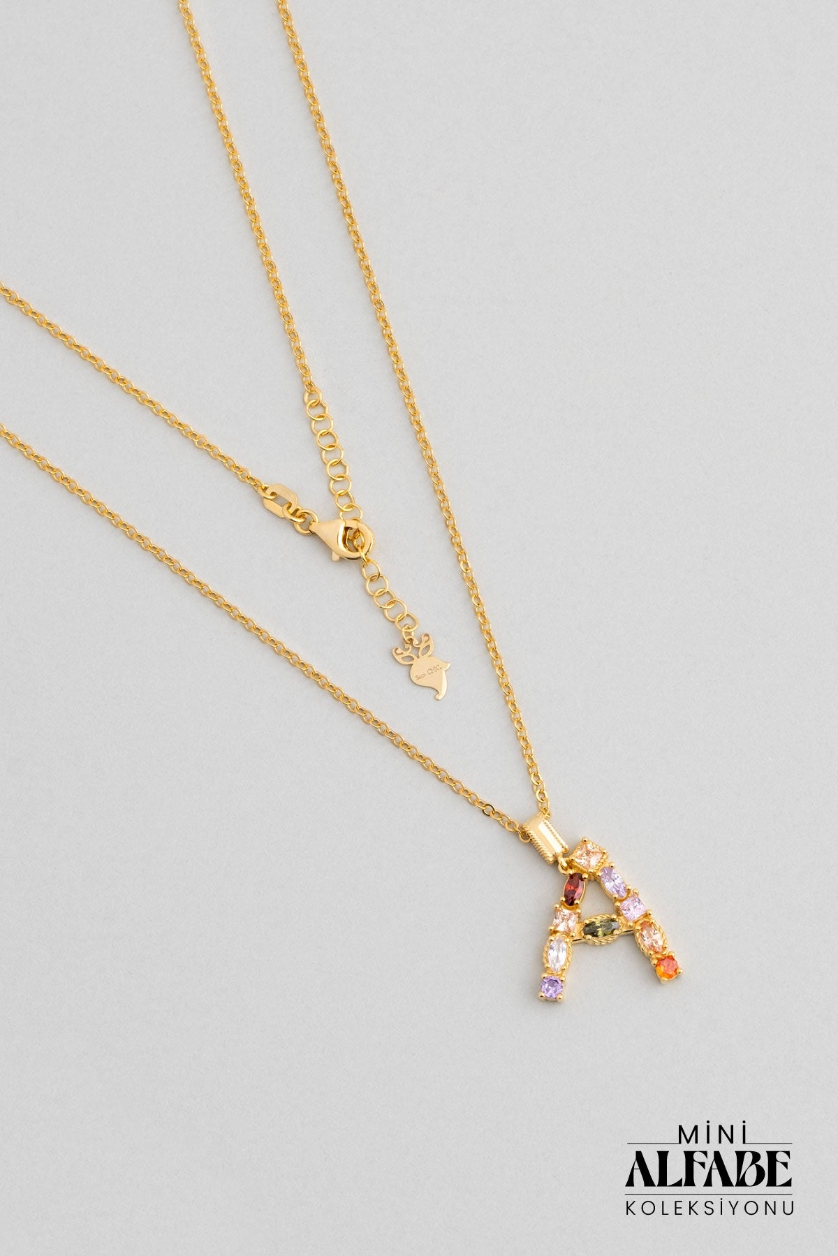 Mini A Harfi Günışığı Renkli 18 Ayar Sarı Altın Kaplama 45 Cm Gümüş Kolye 07300001344