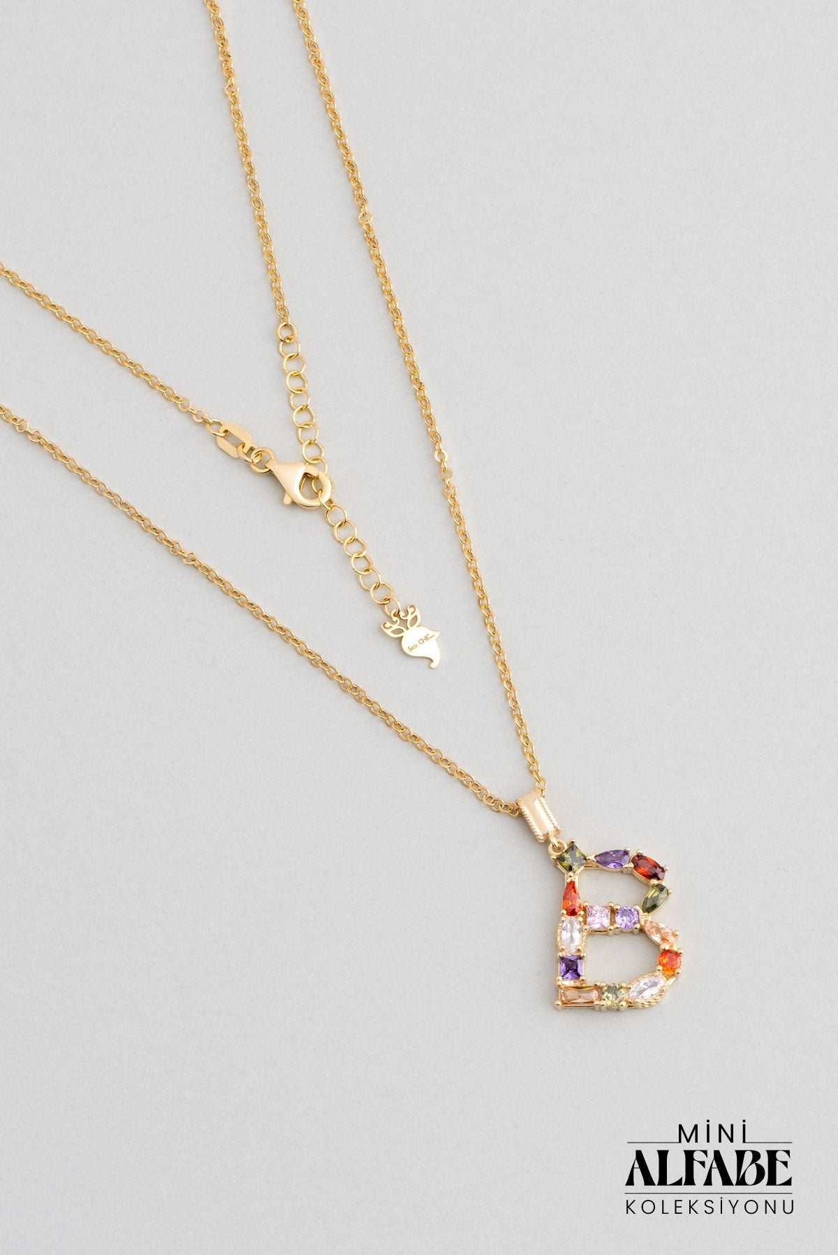 Mini B Harfi Günışığı Renkli 18 Ayar Sarı Altın Kaplama 45 Cm Gümüş Kolye 07300011344