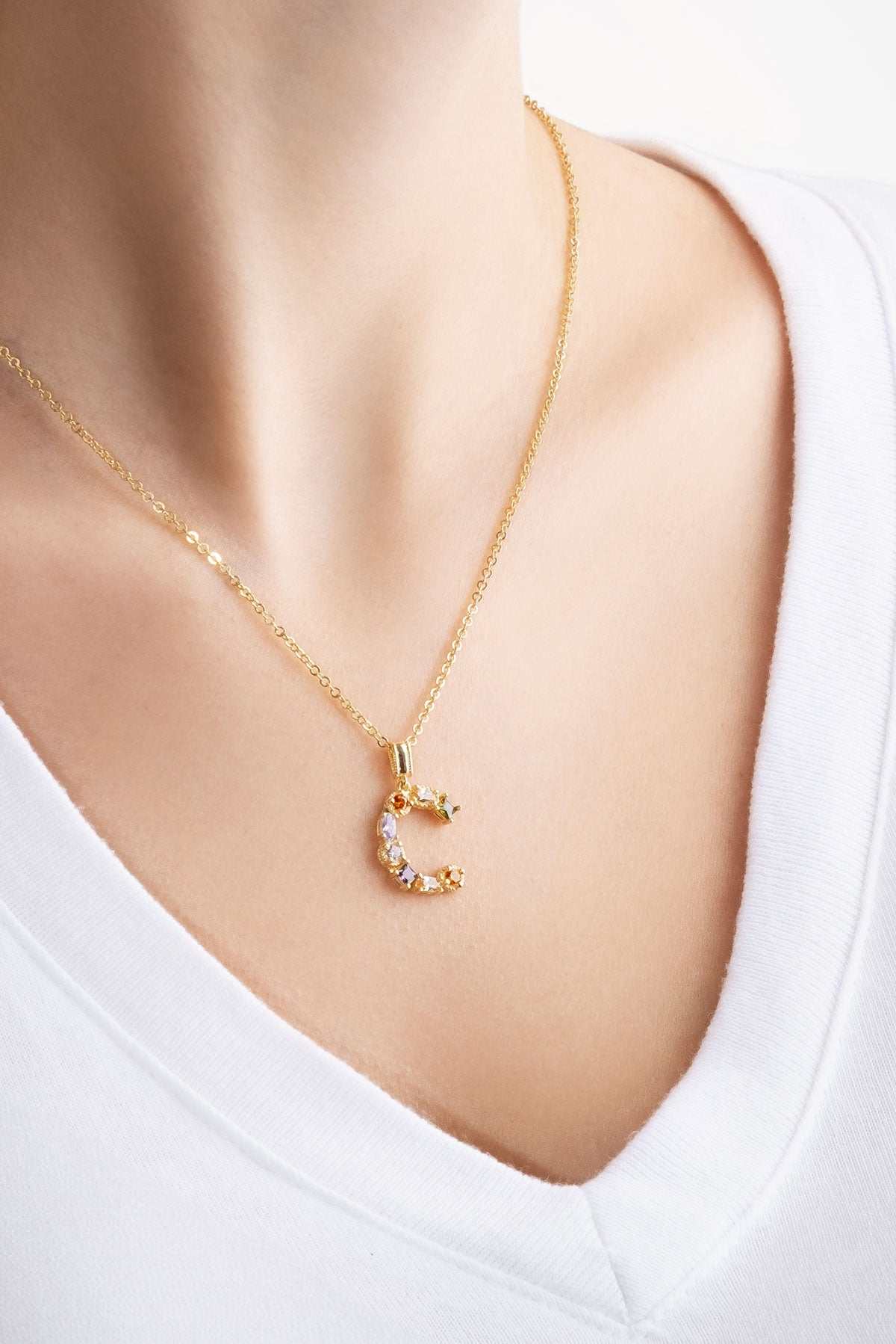 Mini C Harfi Günışığı Renkli 18 Ayar Sarı Altın Kaplama 45 Cm Gümüş Kolye 07300021344