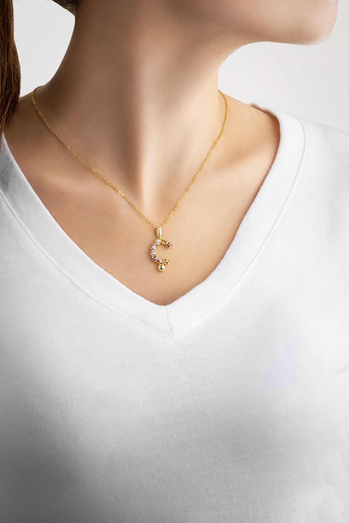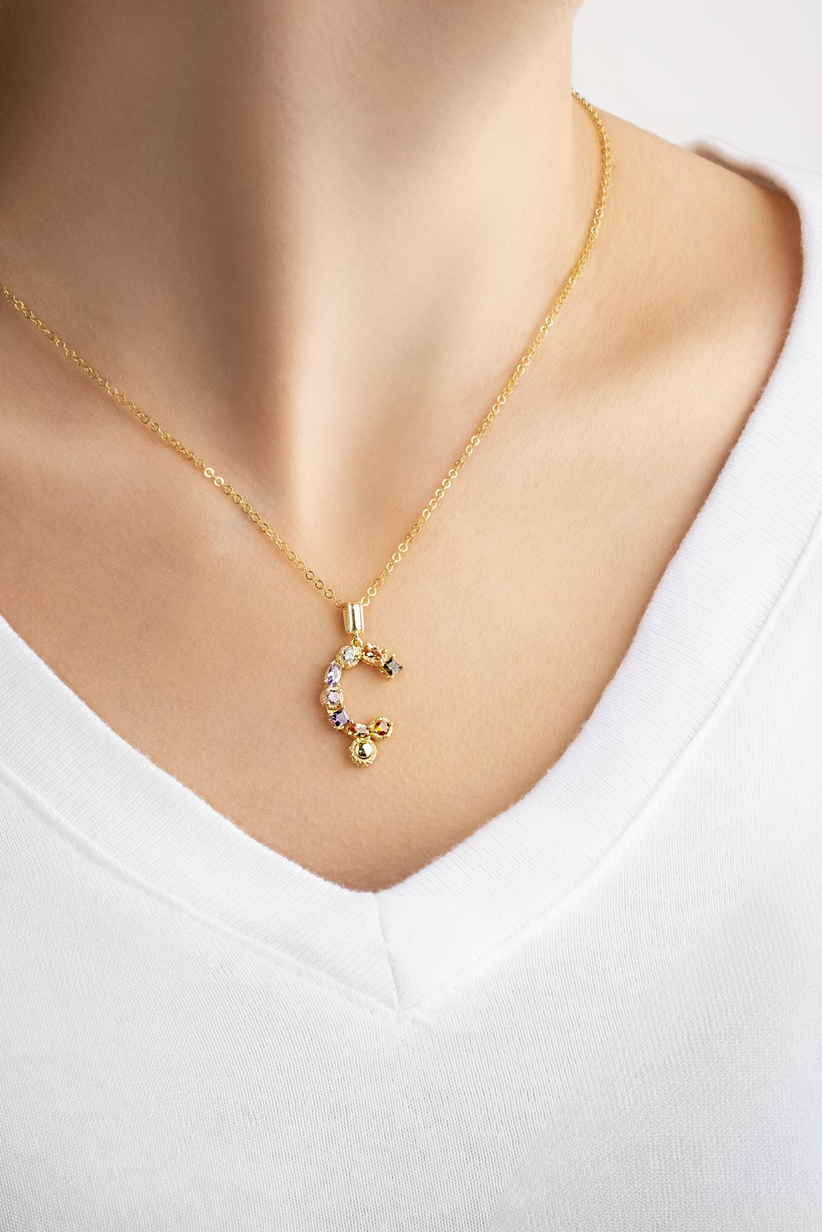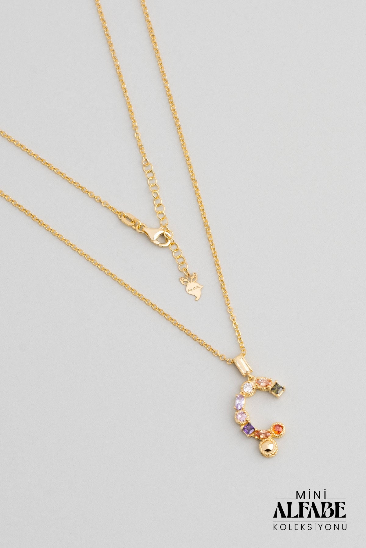 Mini Ç Harfi Günışığı Renkli 18 Ayar Sarı Altın Kaplama 45 Cm Gümüş Kolye 07300031344
