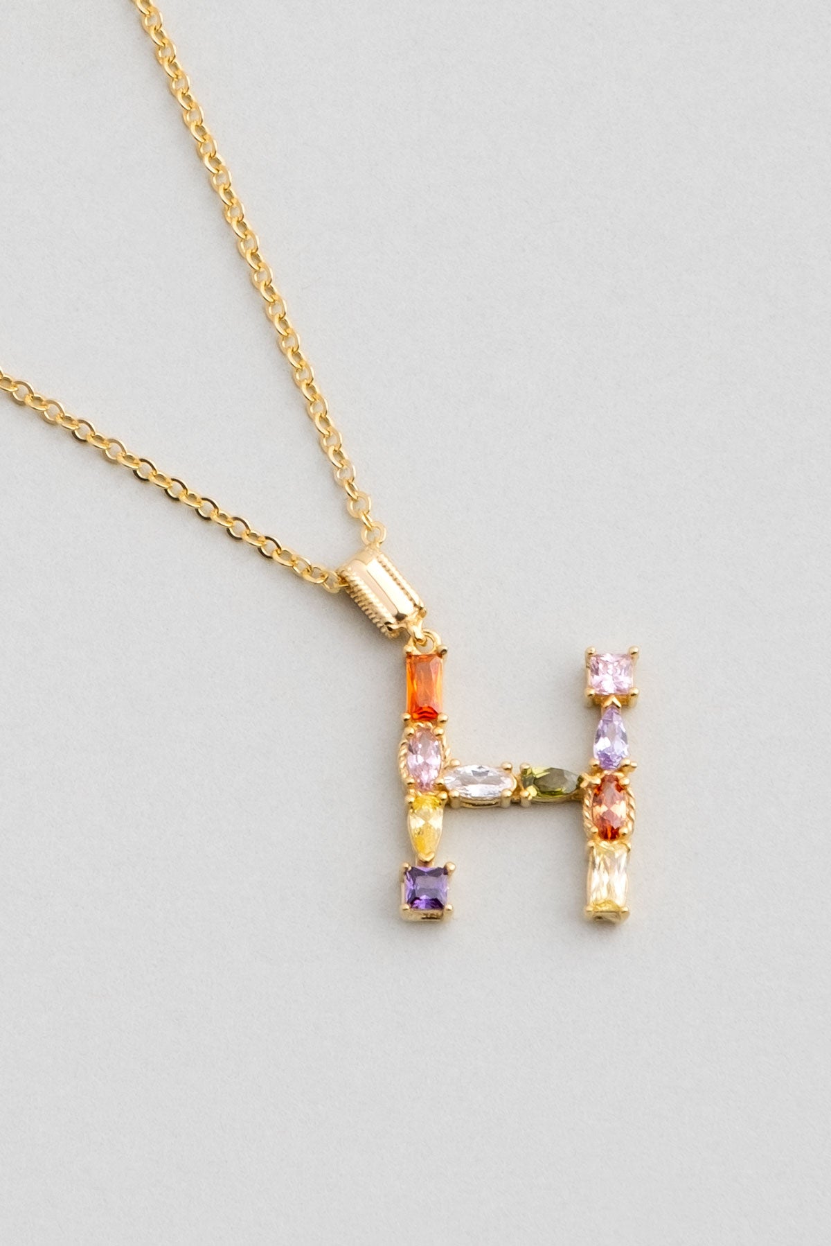Mini H Harfi Günışığı Renkli 18 Ayar Sarı Altın Kaplama Gümüş Kolye 07300081344