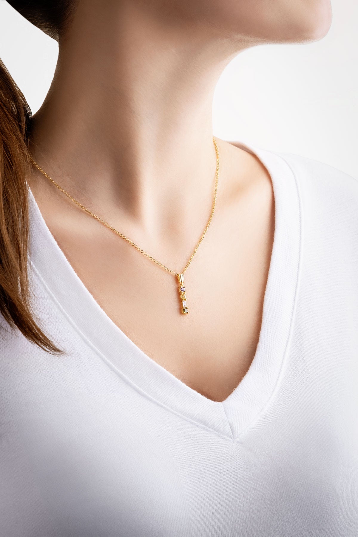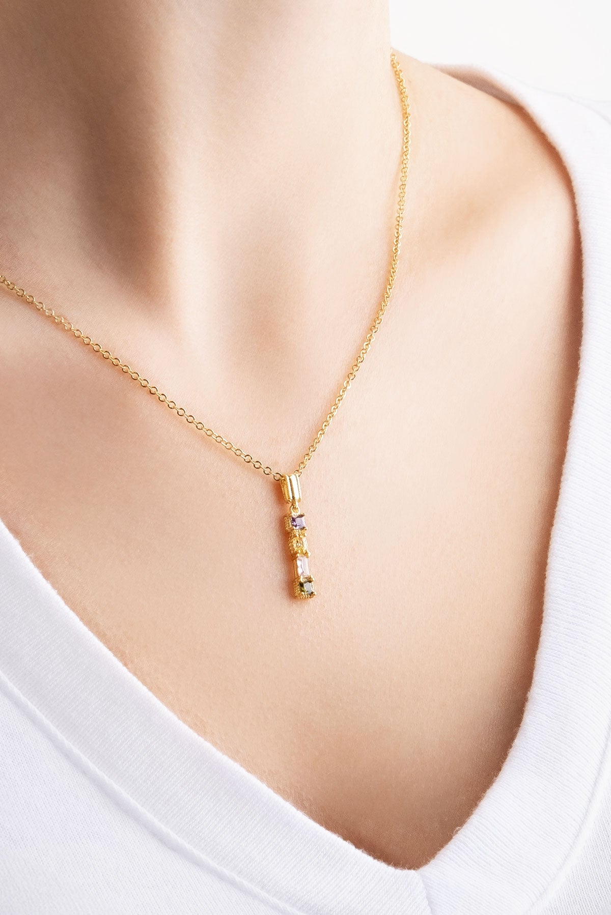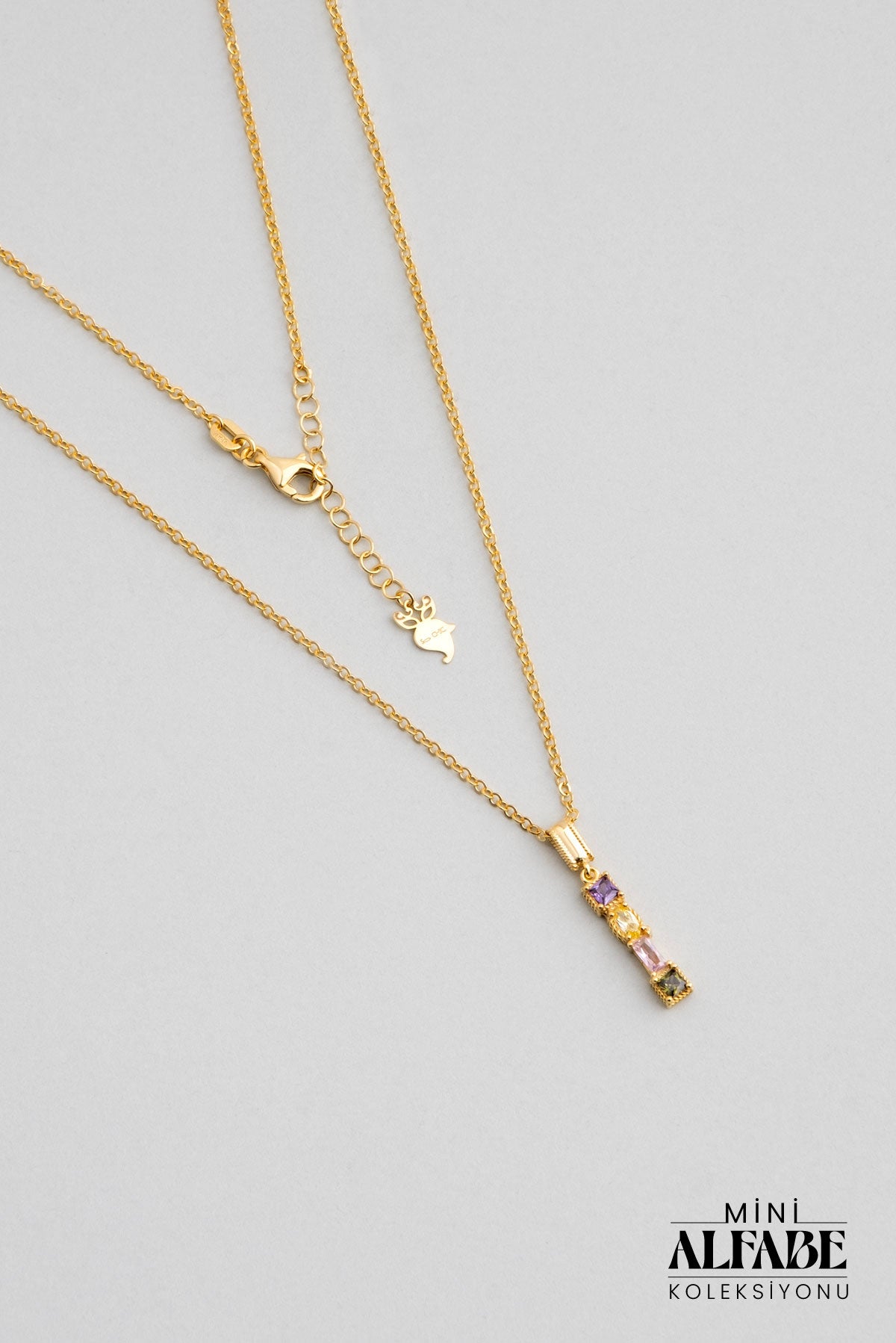 Mini I Harfi Günışığı Renkli 18 Ayar Sarı Altın Kaplama Gümüş Kolye 07300091344