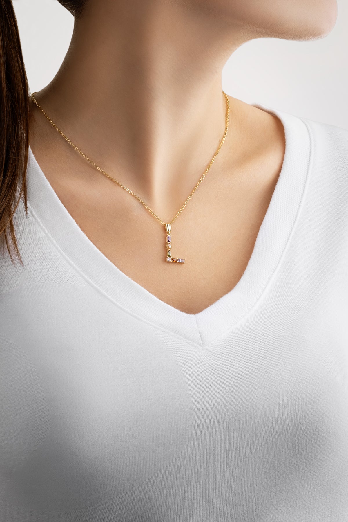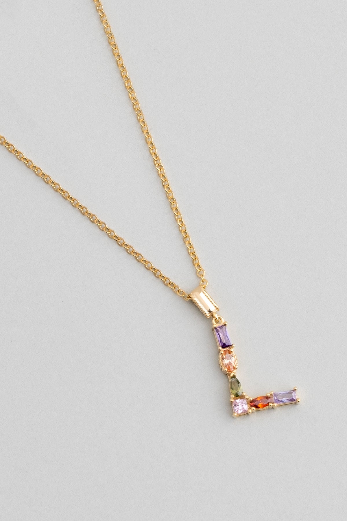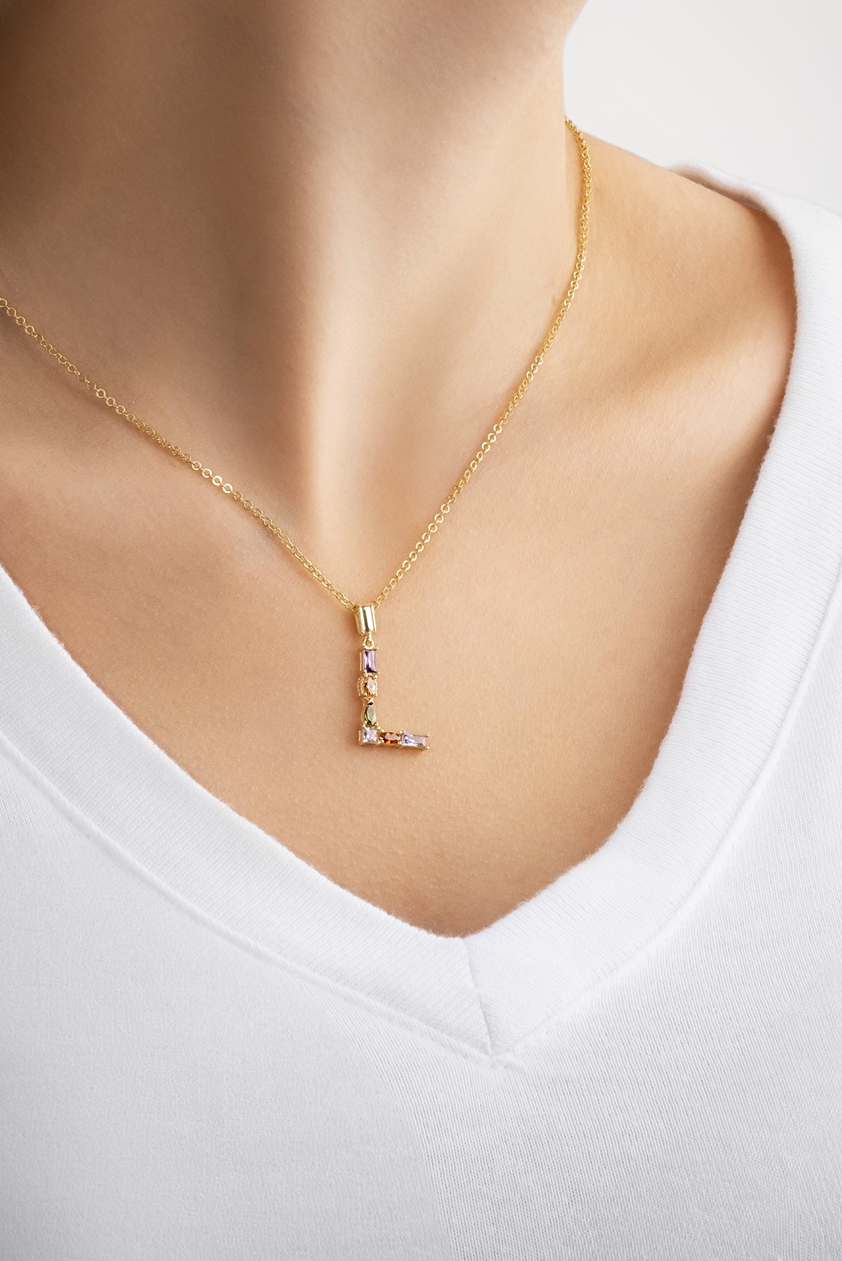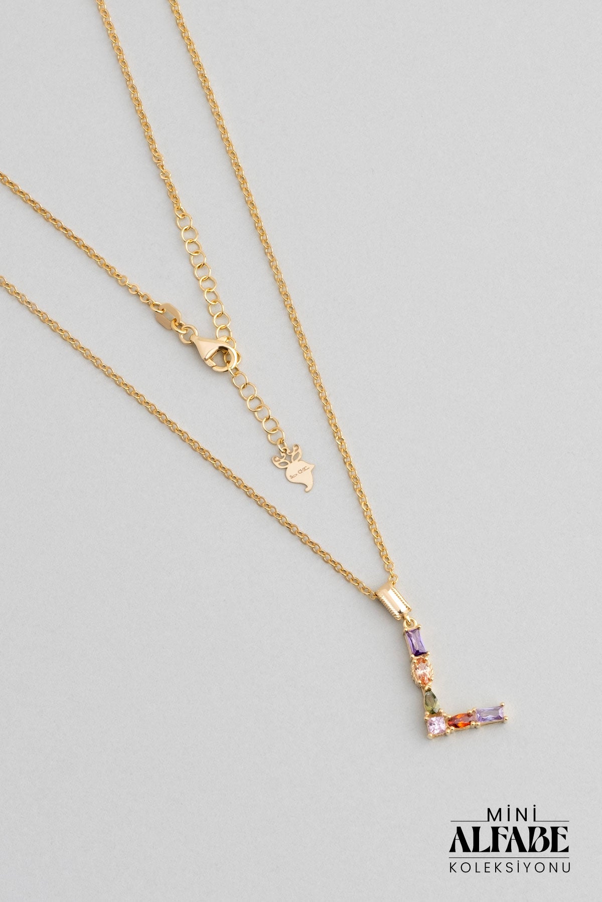 Mini L Harfi Günışığı Renkli 18 Ayar Sarı Altın Kaplama Gümüş Kolye 07300131344