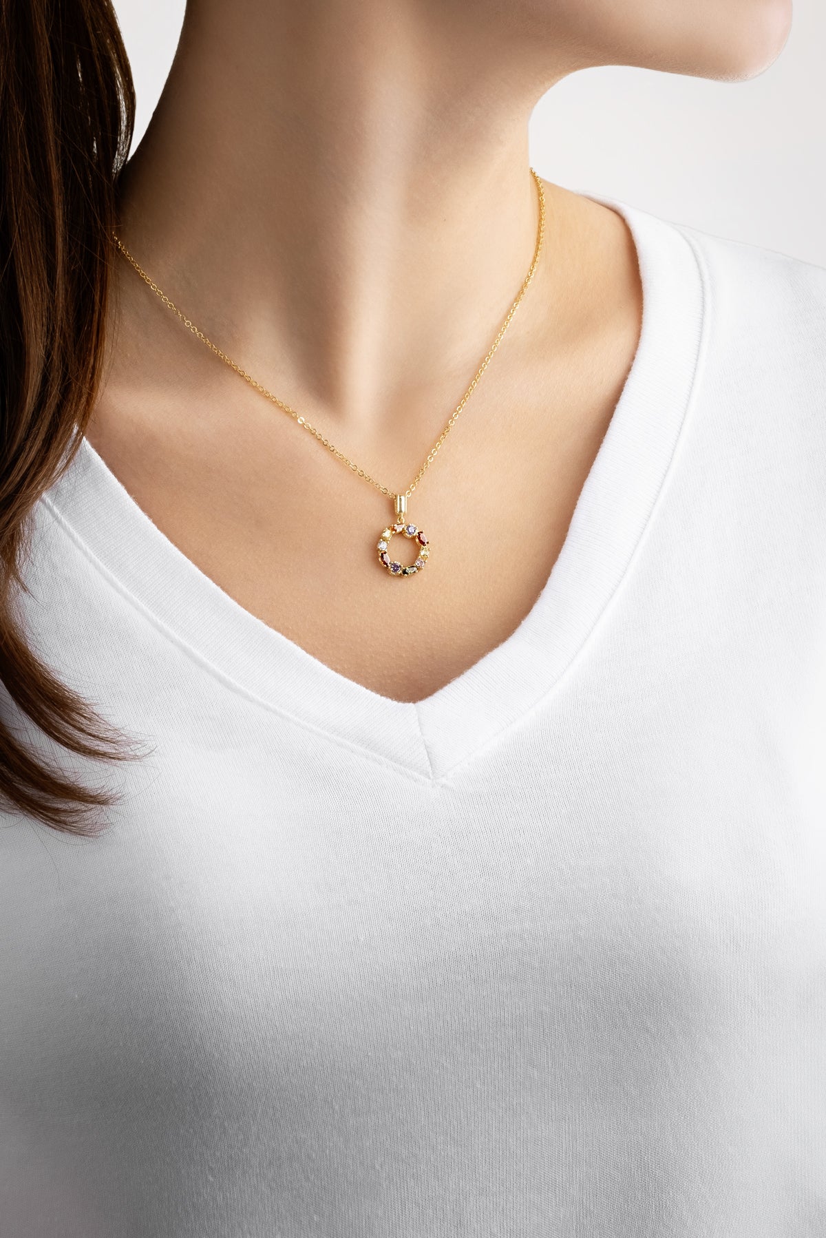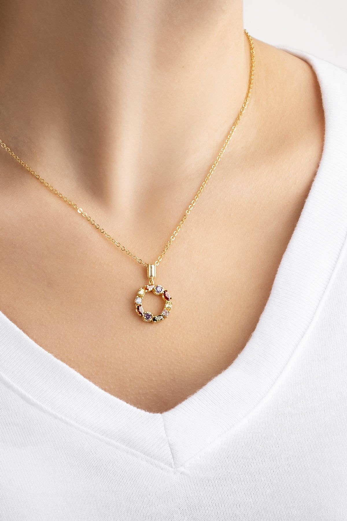 Mini O Harfi Günışığı Renkli 18 Ayar Sarı Altın Kaplama Gümüş Kolye 07300161344
