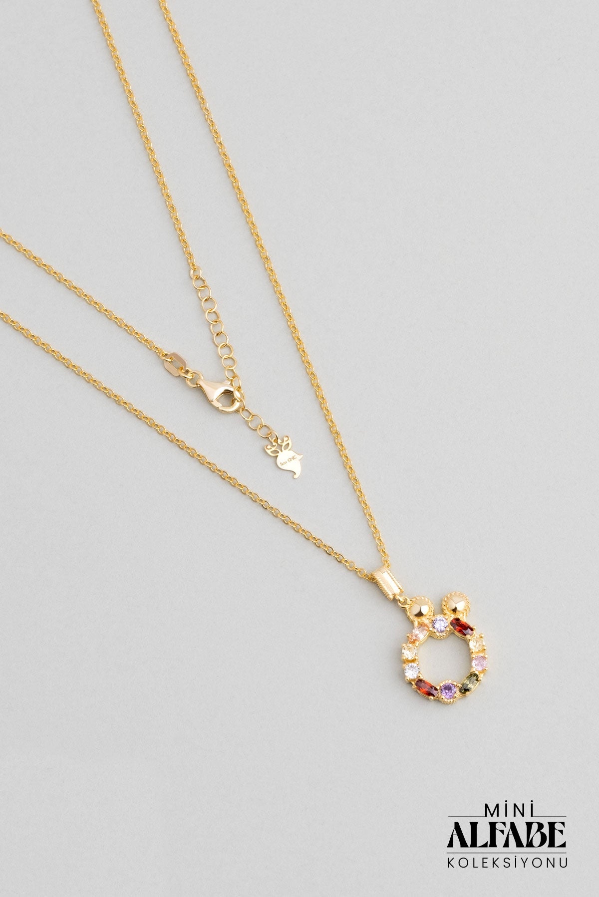 Mini Ö Harfi Günışığı Renkli 18 Ayar Sarı Altın Kaplama Gümüş Kolye 07300171344
