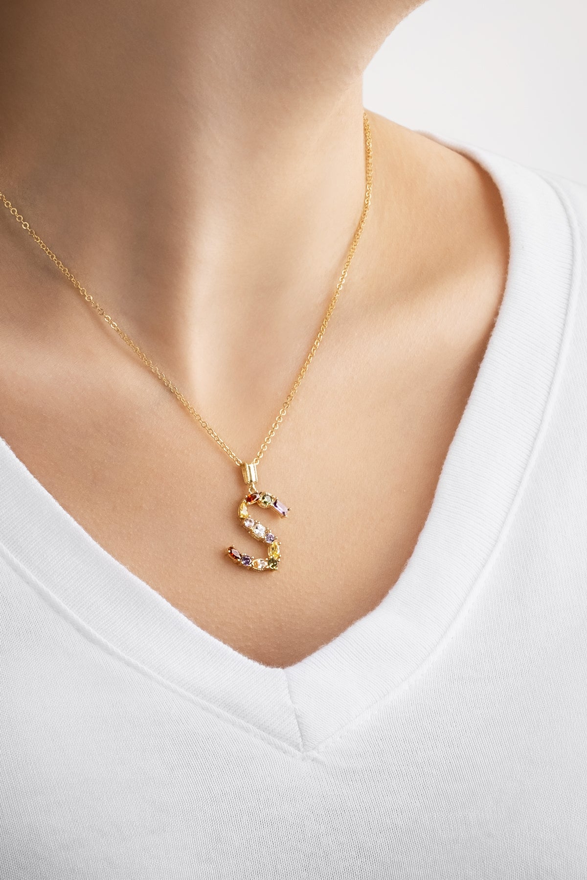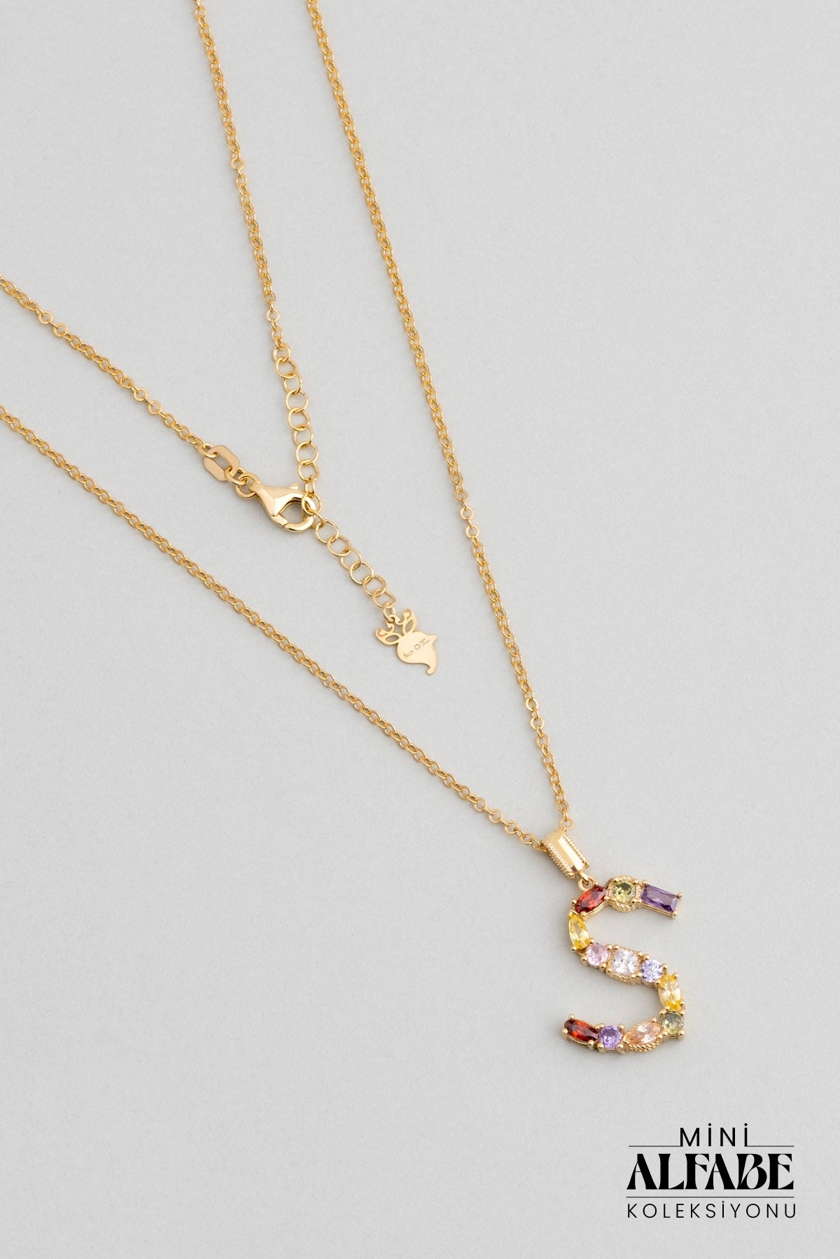 Mini S Harfi Günışığı Renkli 18 Ayar Sarı Altın Kaplama Gümüş Kolye 07300201344