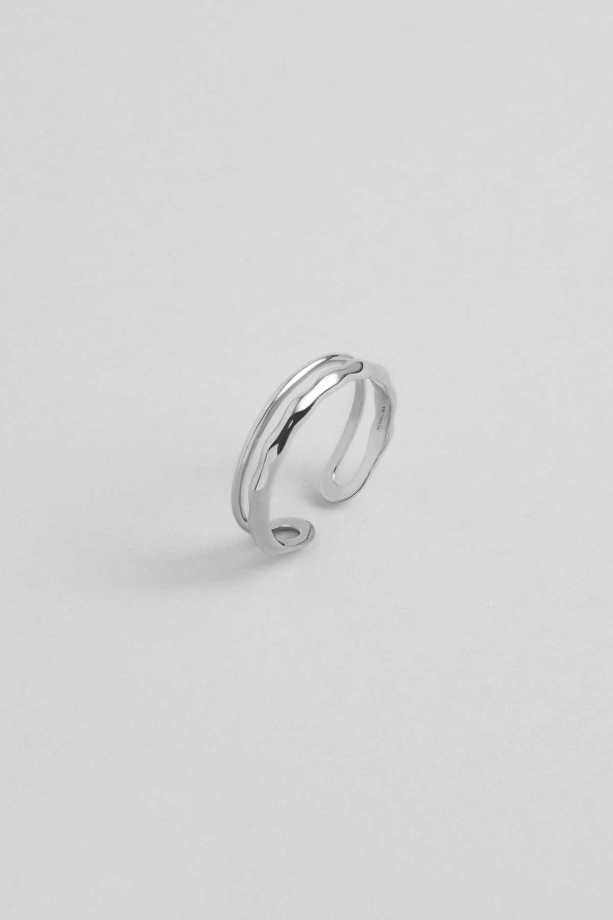 Minimal 18 Ayar Beyaz Altın Kaplama Gümüş Ayarlanabilir Yüzük 5075429999