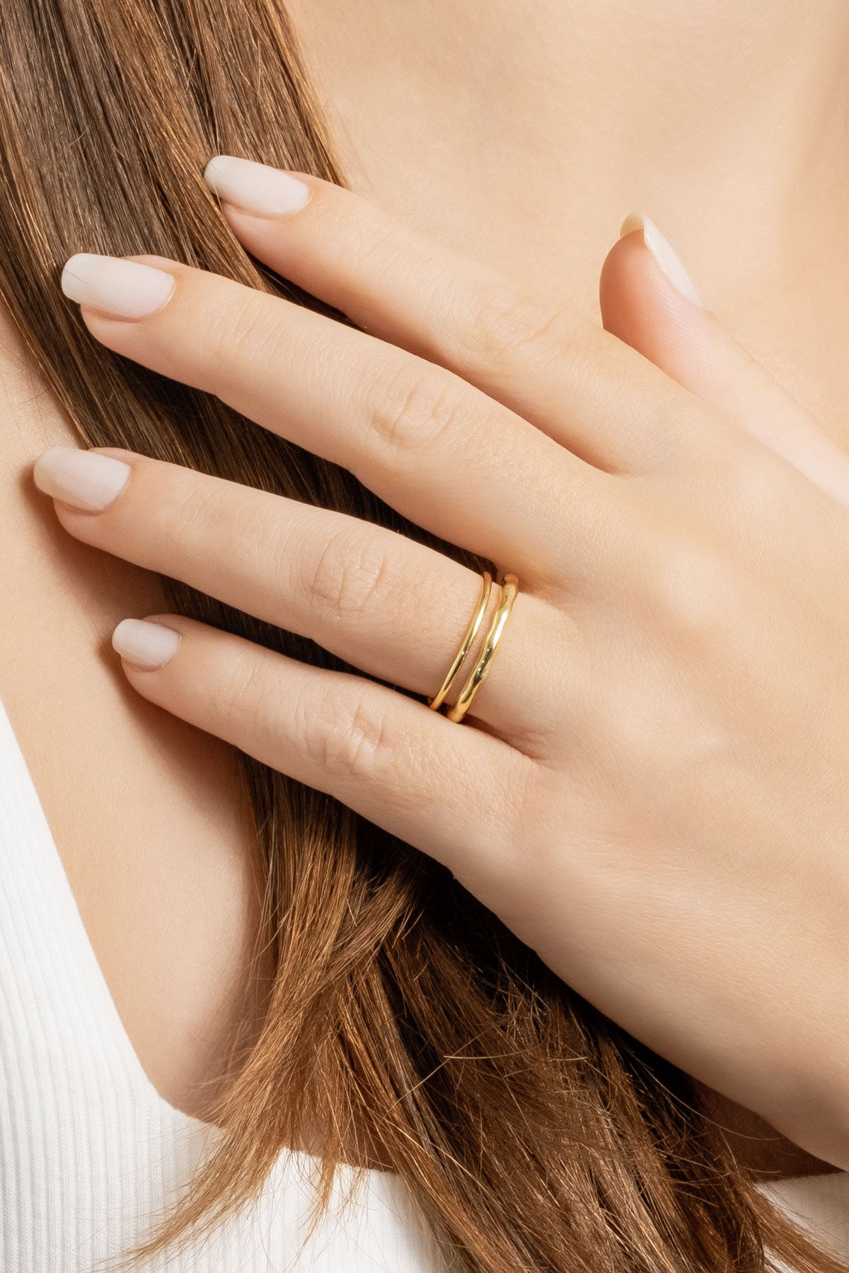 Minimal 18 Ayar Sarı Altın Kaplama Gümüş Ayarlanabilir Yüzük 5075424499