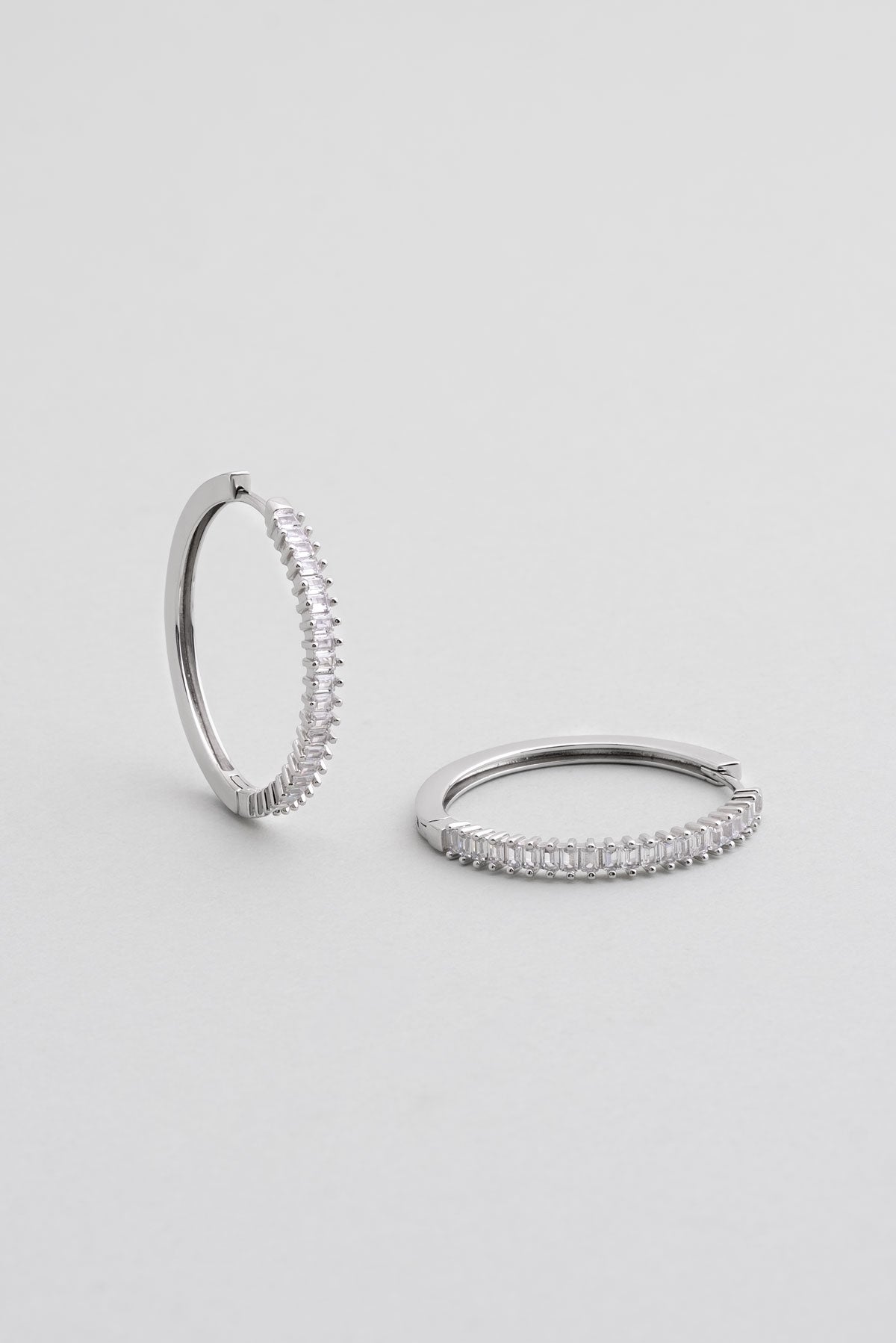 Minimal Baget 18 Ayar Beyaz Altın Kaplama Gümüş Halka Küpe 5097780199