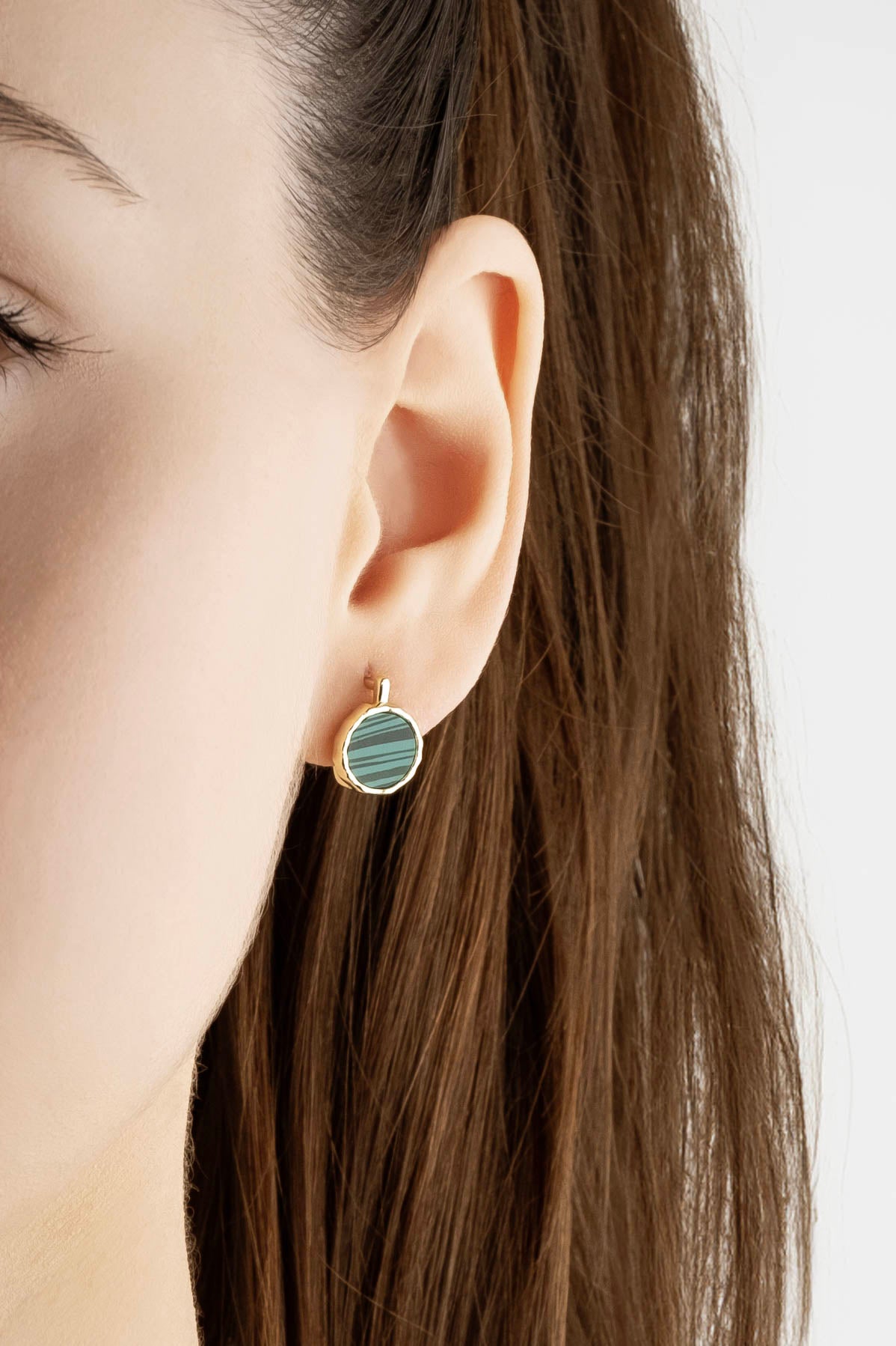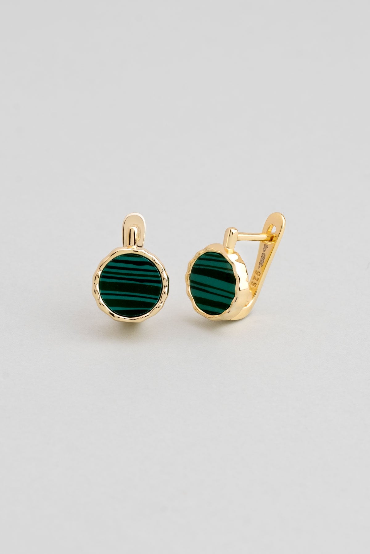 Minimal Malahit 18 Ayar Sarı Altın Kaplama Gümüş Küpe 07299530444