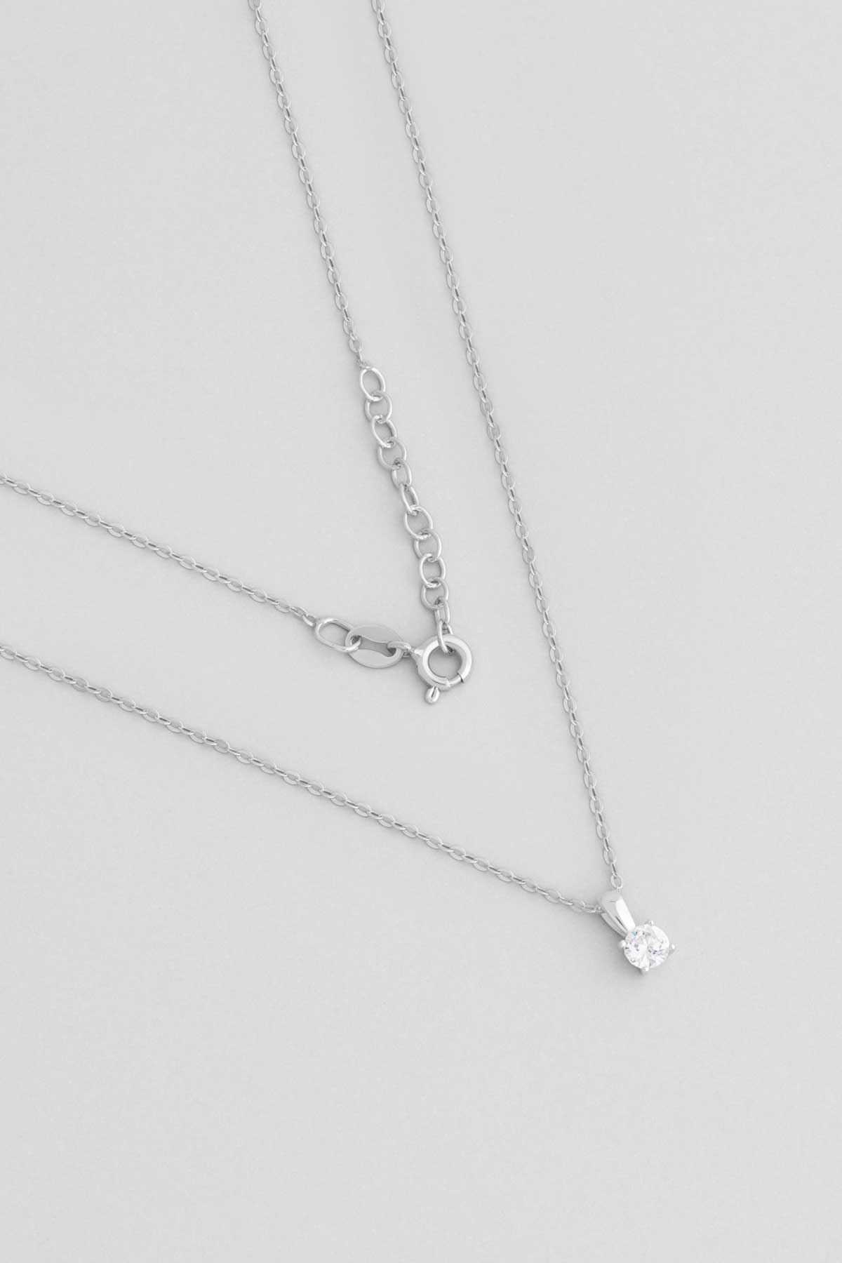 Minimal Taşlı 18 Ayar Beyaz Altın Kaplama 43 Cm Gümüş Tektaş Kolye 5113870199