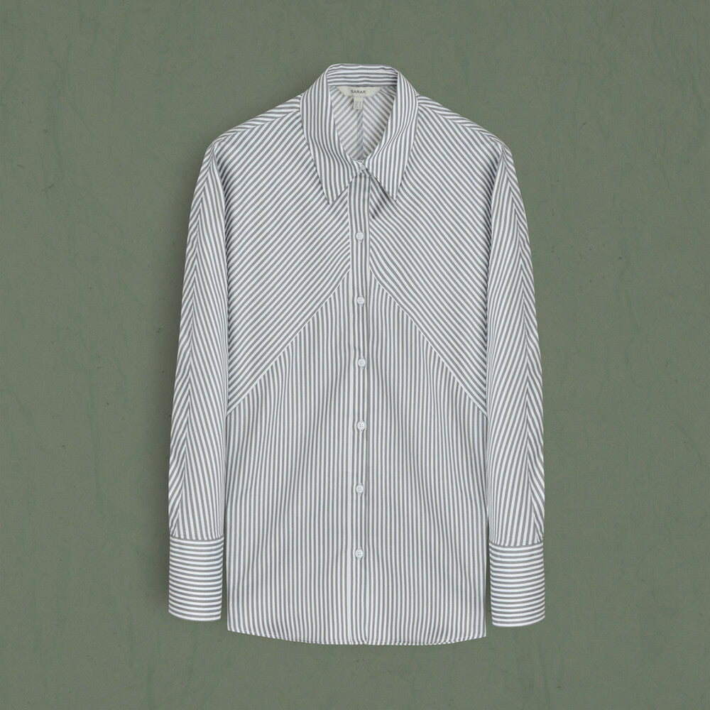 Mira Kadın Çizgili Gri Gömlek ile tarzına renk kat! Kadın Gömlek modellerini SARAR kalitesiyle anında satın alın!