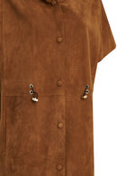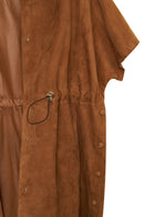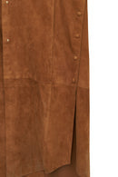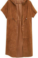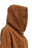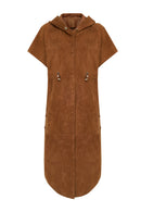 Miranda Kadın Kahverengi Kapüşonlu Süet Deri Uzun Yelek