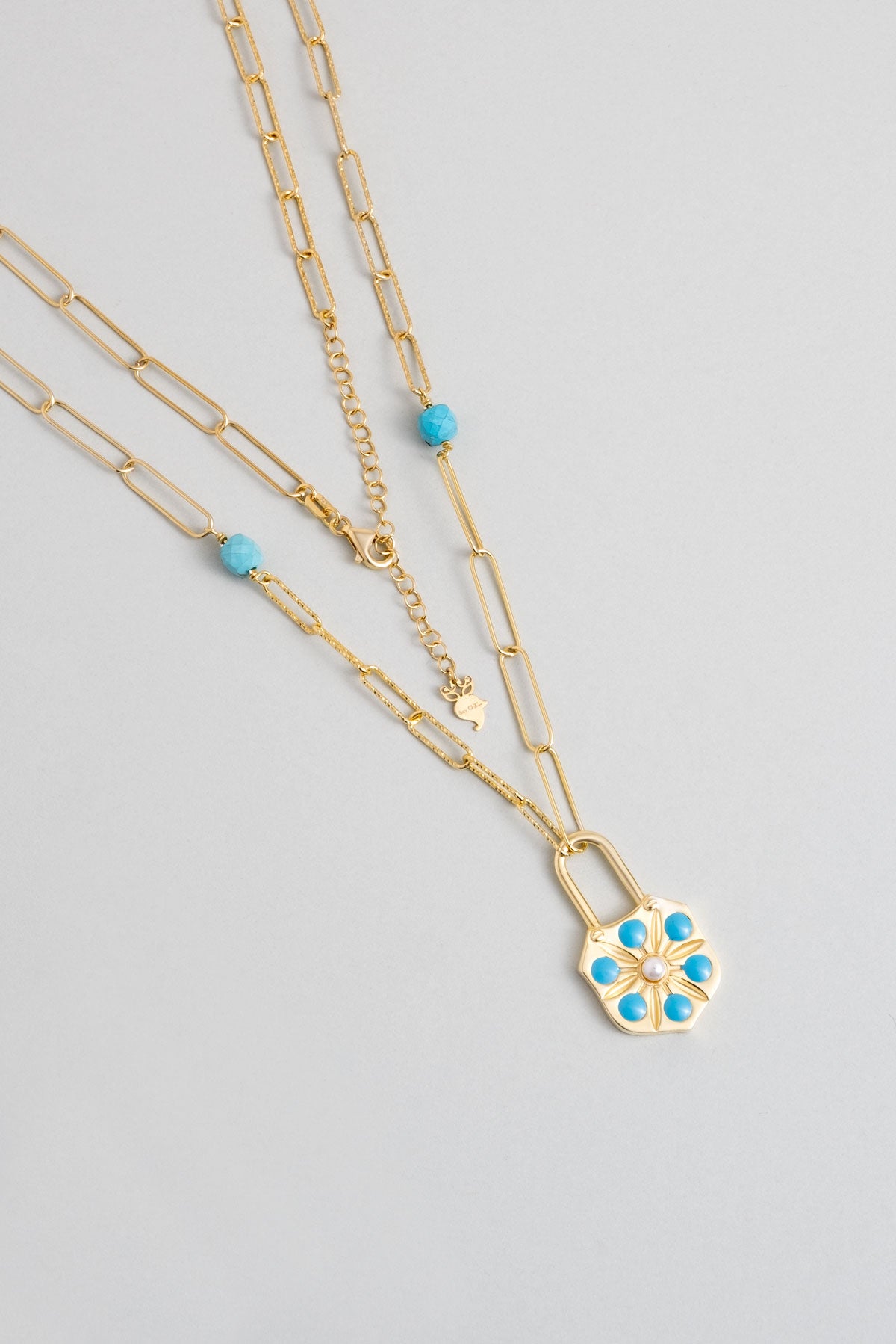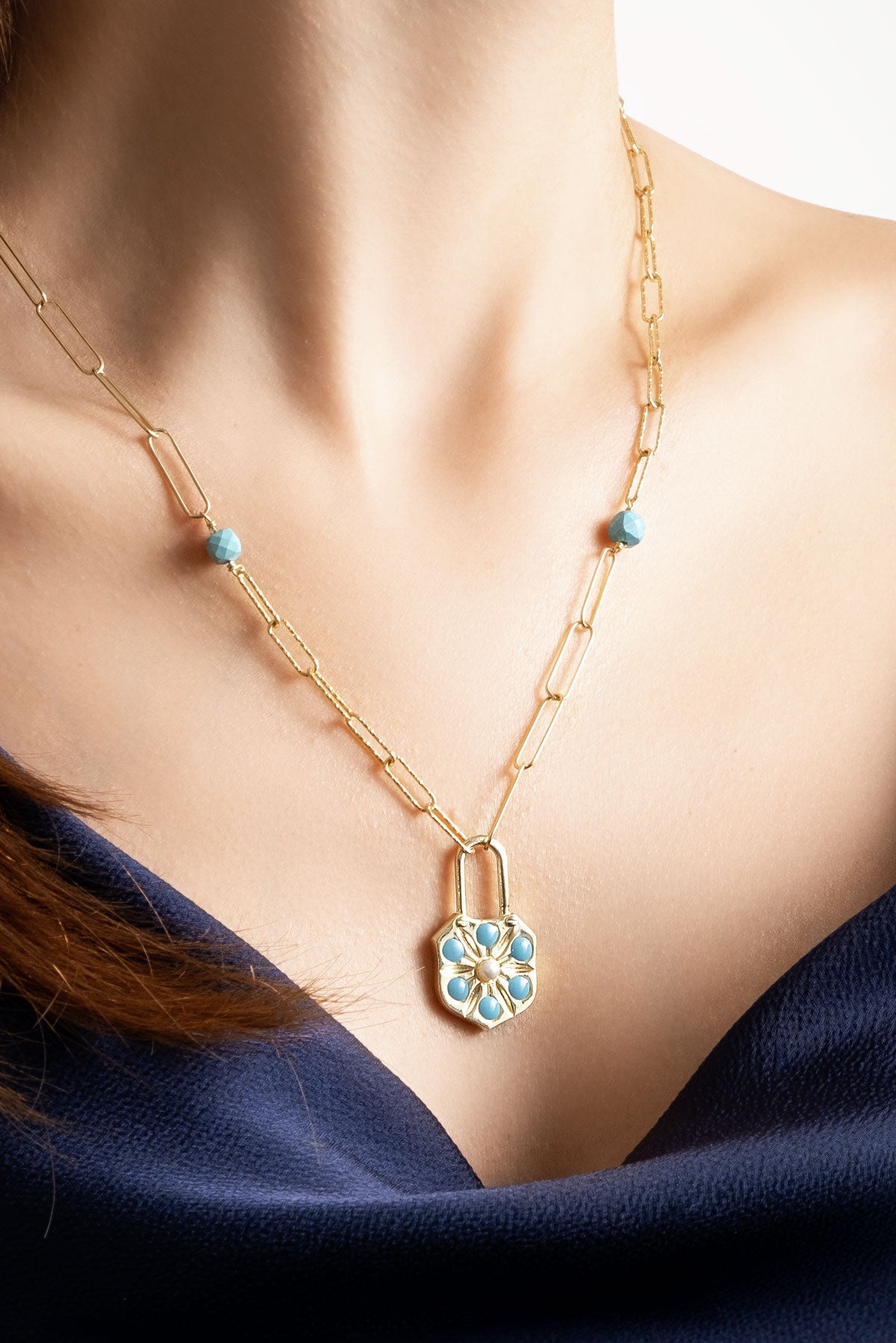 Mistik Turkuaz 18 Ayar Sarı Altın Kaplama 53 Cm Gümüş Kolye 07293471644