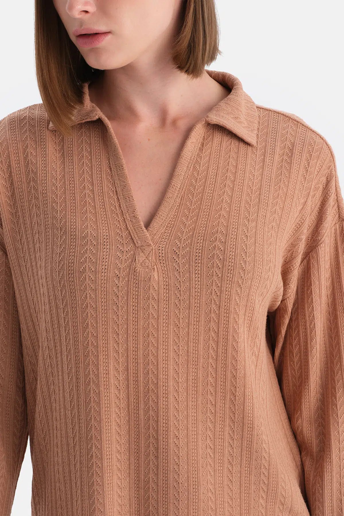 Mocha Örgü Detaylı Polo Yaka Tişört