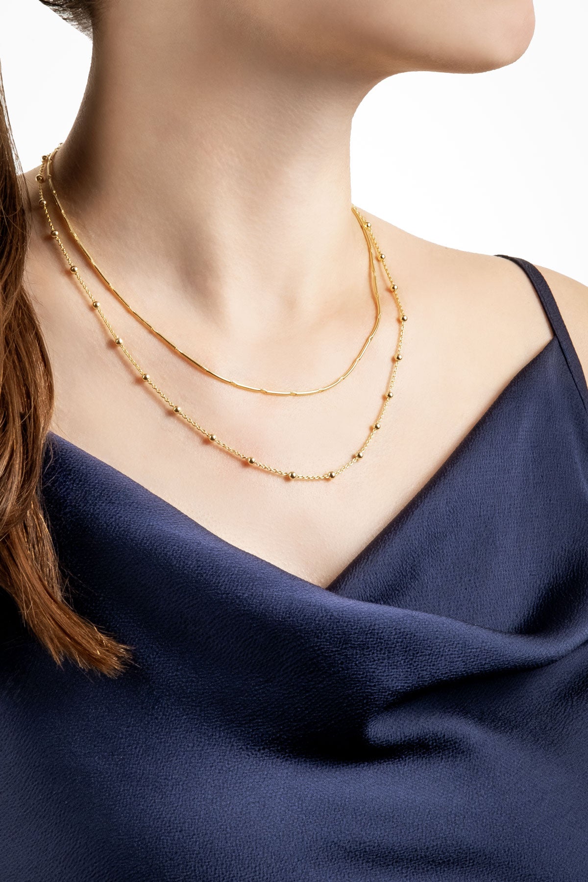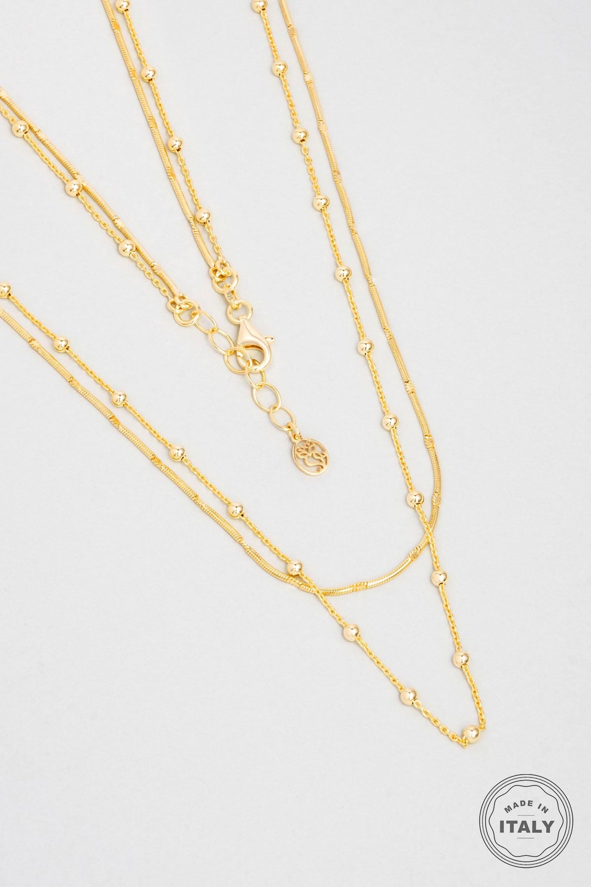 Modern Italyan 18 Ayar Sarı Altın Kaplama 47 Cm Gümüş Ikili Kolye 5207464499