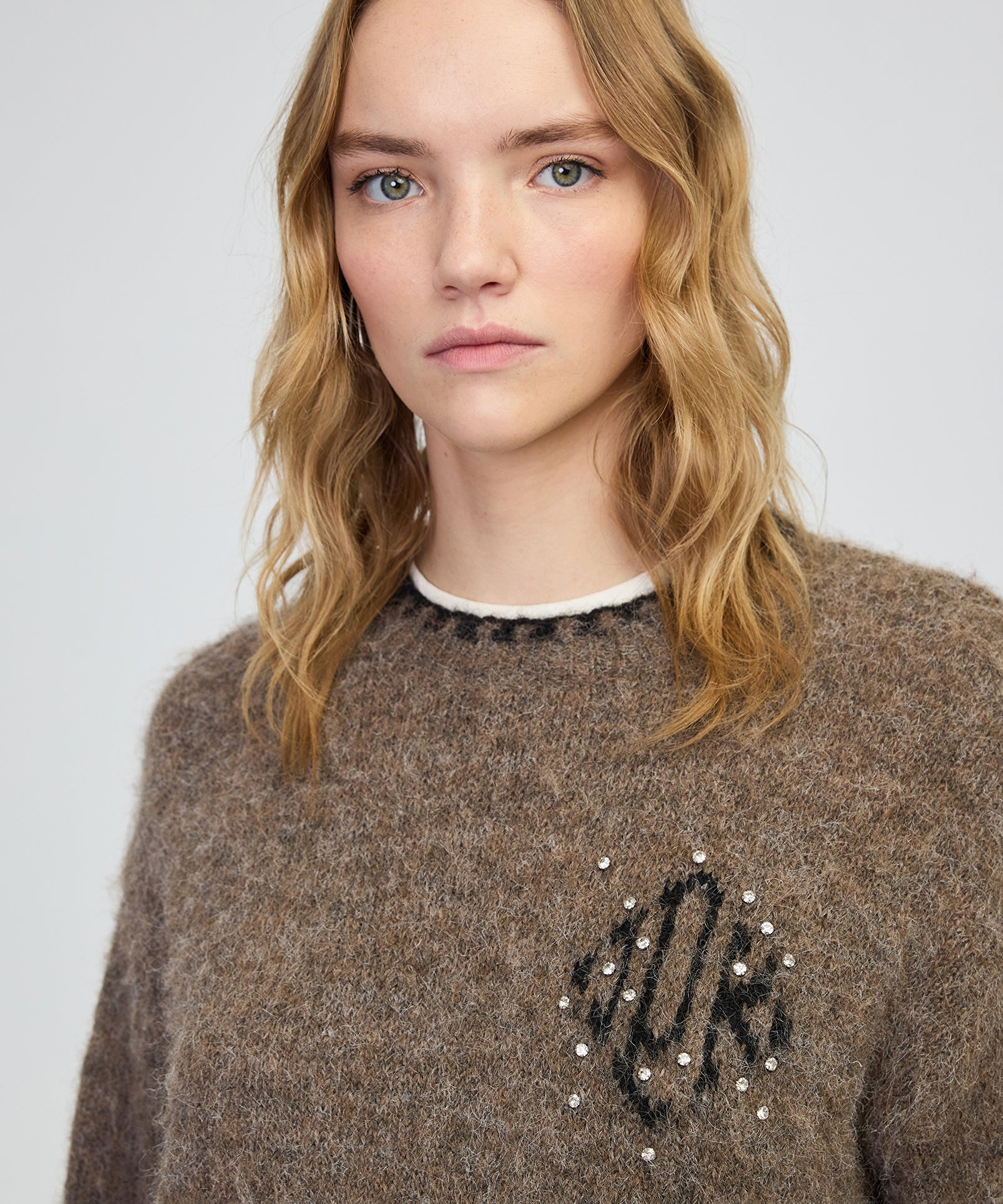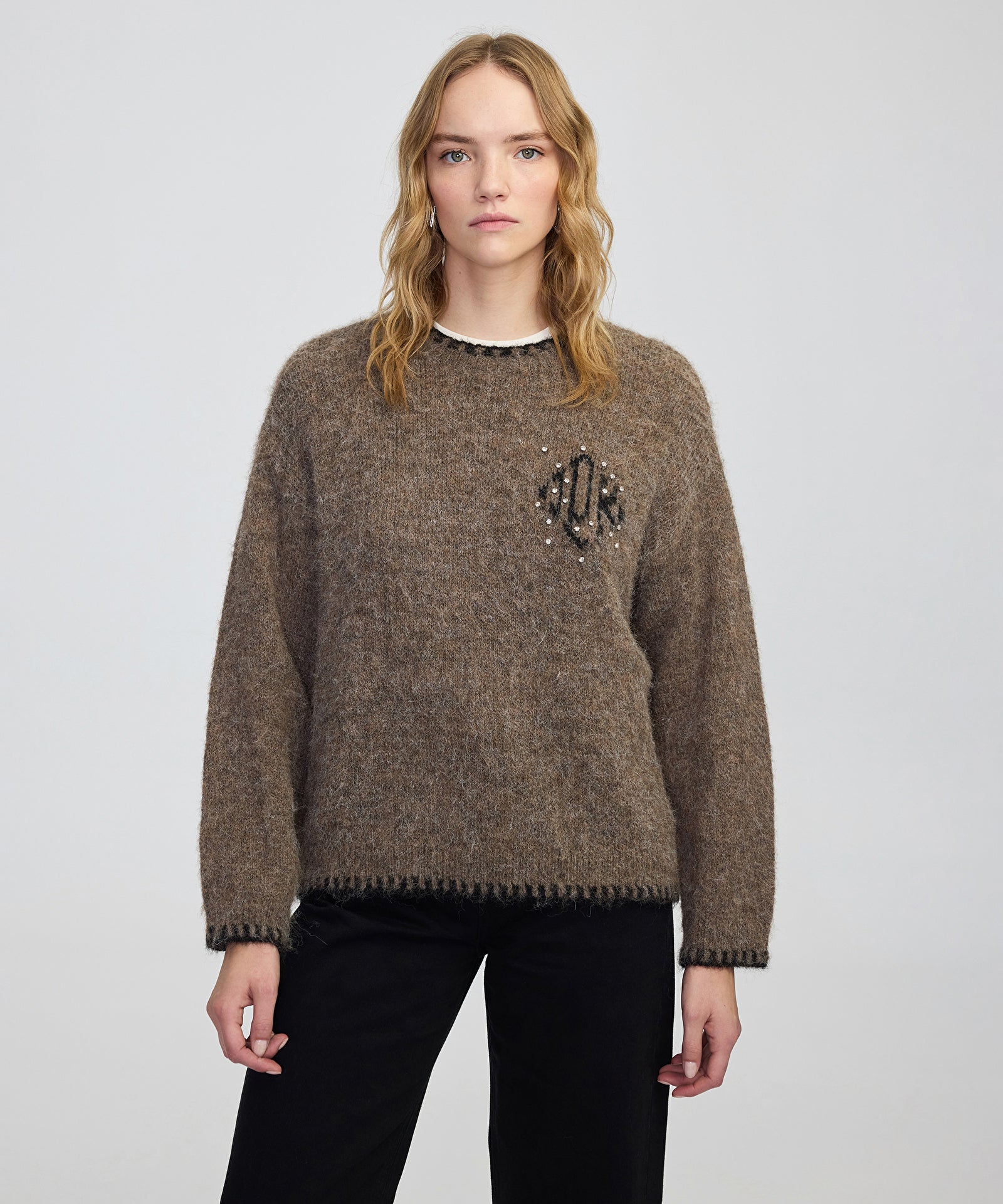 Kahverengi Monogram jakarlı strass taş işlemeli kazak IW6250050110074 ile tarzınızı tamamlayacaksınız. IPEKYOL tarzına sahip olmak için hemen tıklayın!