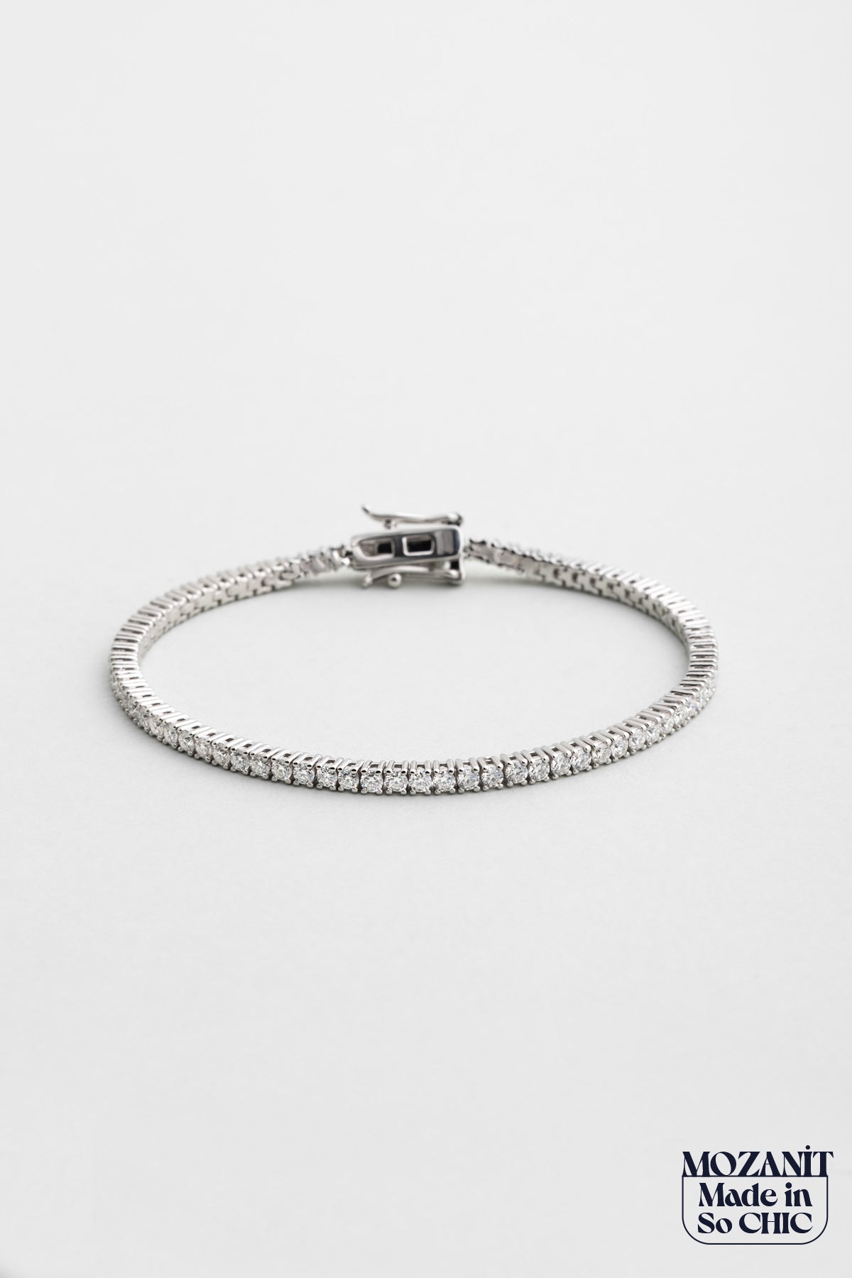 Mozanit Dokunuşu 18 Ayar Beyaz Altın Kaplama 18 Cm Gümüş Su Yolu Bileklik 5193189918