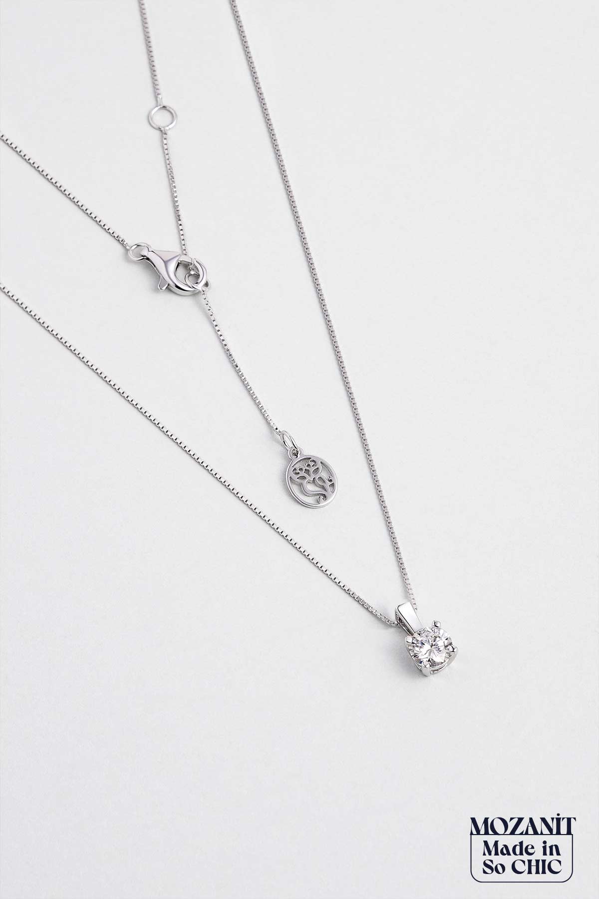 Mozanit Dokunuşu 18 Ayar Beyaz Altın Kaplama 45 Cm Gümüş Tektaş Kolye 5205510199