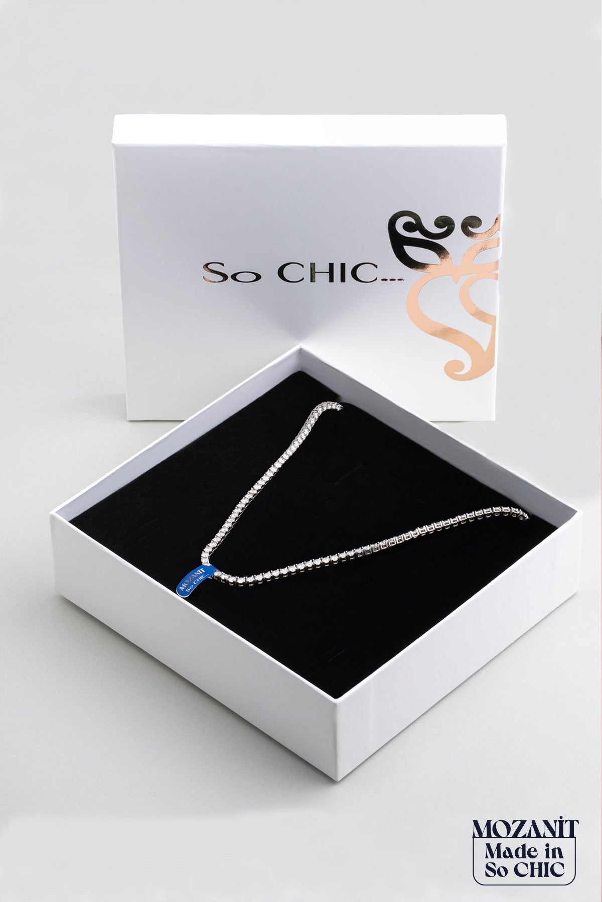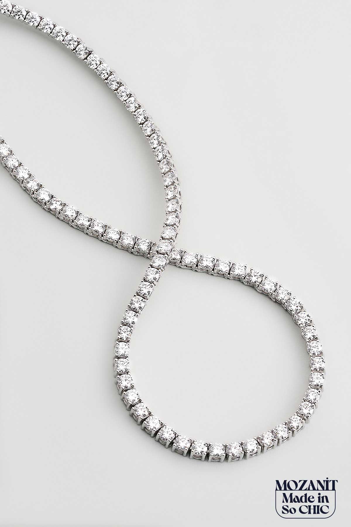 Mozanit Işıltısı 18 Ayar Beyaz Altın Kaplama 42 Cm Gümüş Su Yolu Kolye 5193149942
